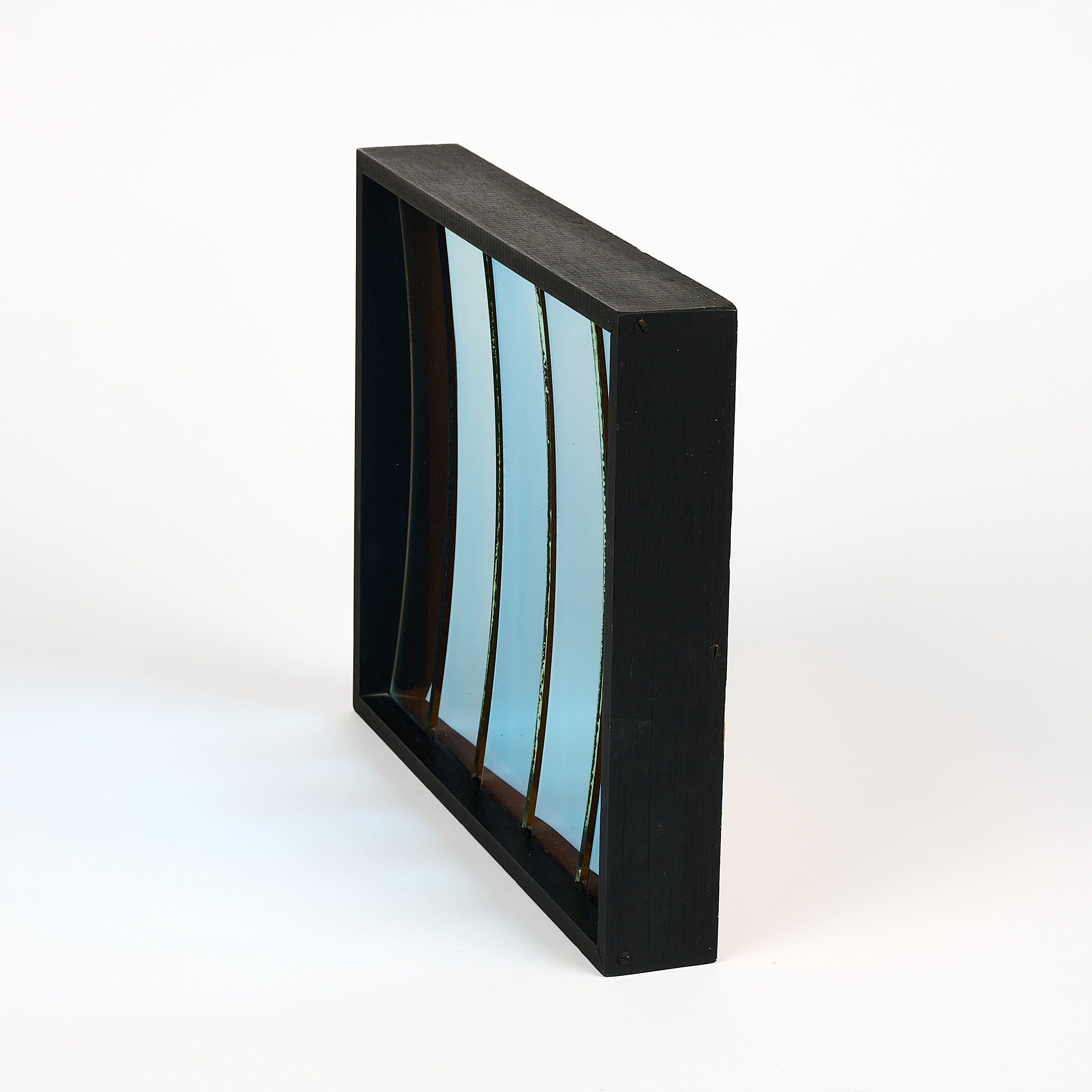 Technik: Fünf getönte, konkave, semitransparente Spiegelpaneele in schwarzem Objektkasten.