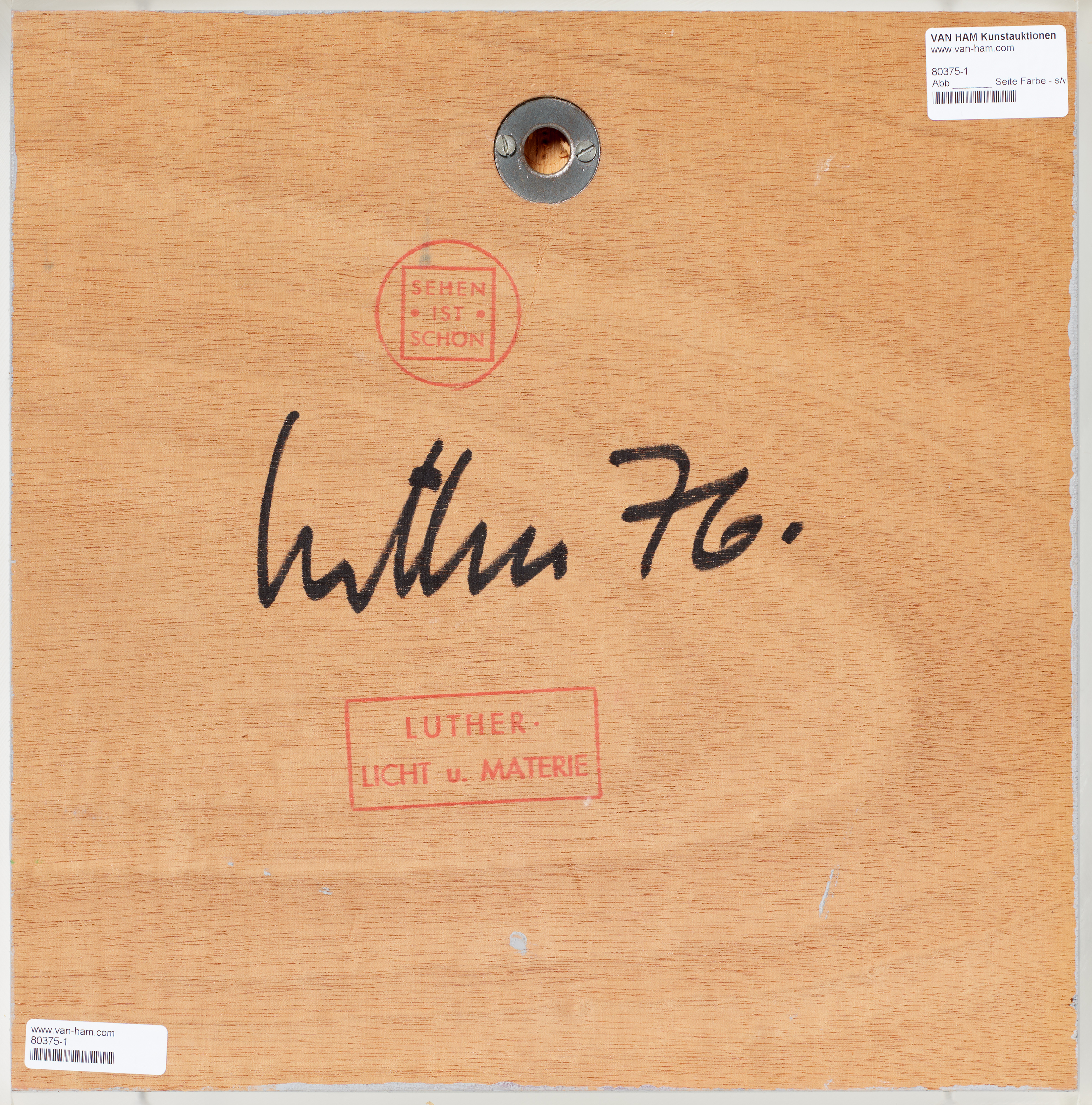 Verso mit dem Rotstempeln SEHEN IST SCHÖN und LUTHER LICHT u. MATERIE.