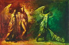 Aripile Destinului (Flügel des Schicksals). 2002. Öl auf Karton. 32 x 46cm. Signiert und datiert oben rechts: Ghenie 2002. Verso befinden sich zwei Stempel. Rahmen.