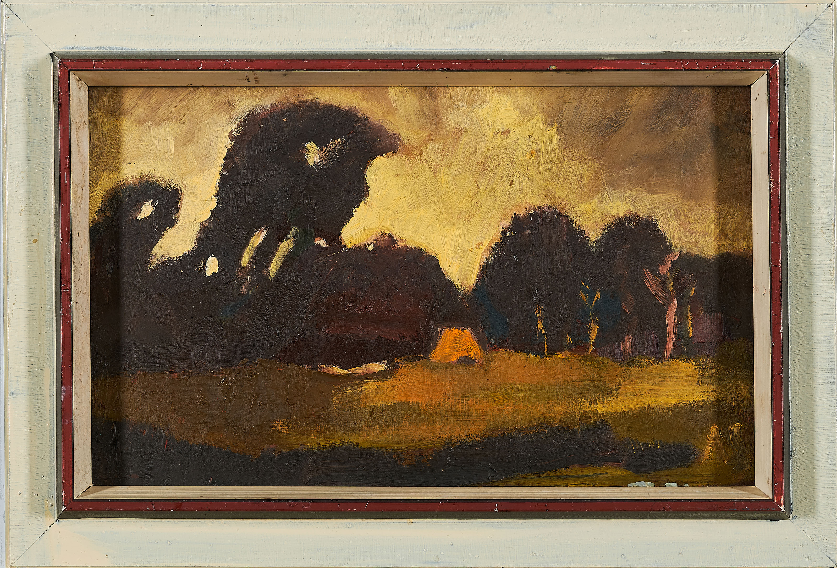 Minimal verschmutzte Malfläche. Minimale Ablagerungen von Staub. Ansonsten sehr guter Zustand. Unter UV-Licht keine Retuschen oder Übermalungen erkennbar.