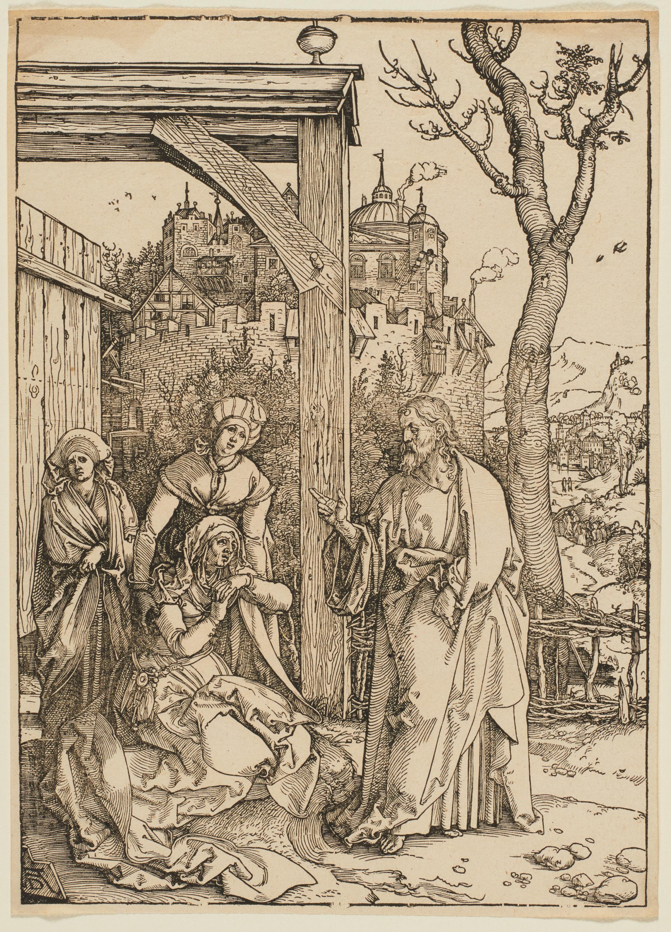 Technik: Holzschnitt auf Papier.