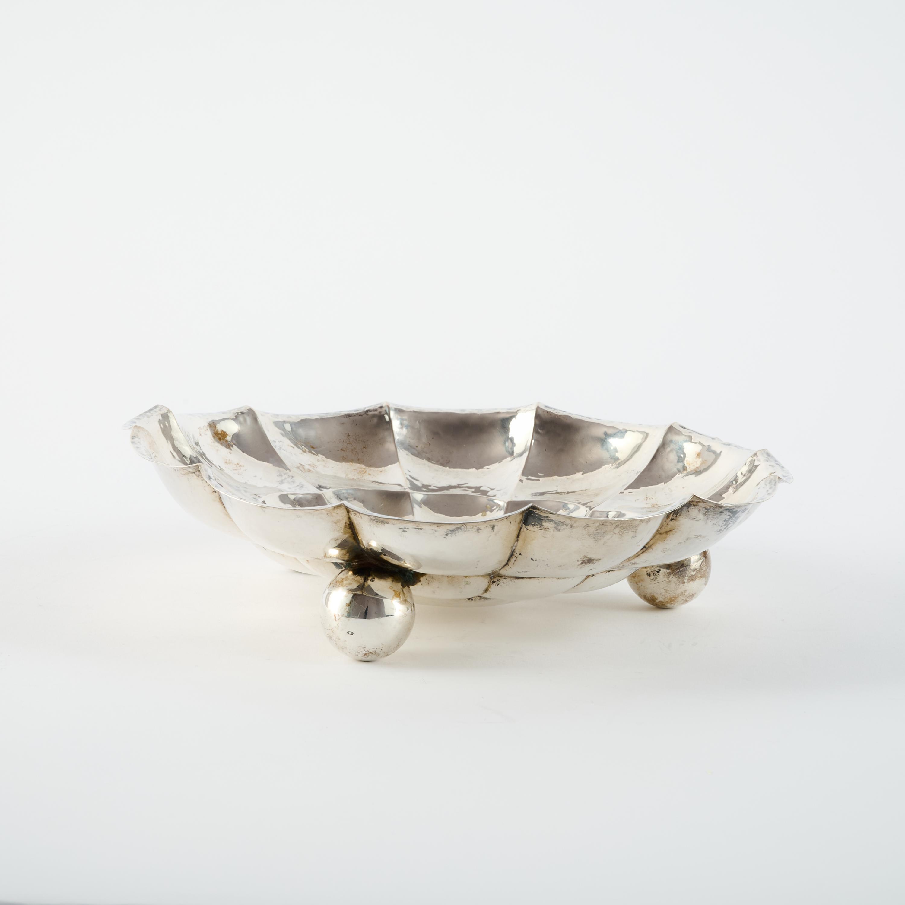 RUNDE ANBIETSCHALE MIT MARTELLIERTER OBERFLÄCHE.