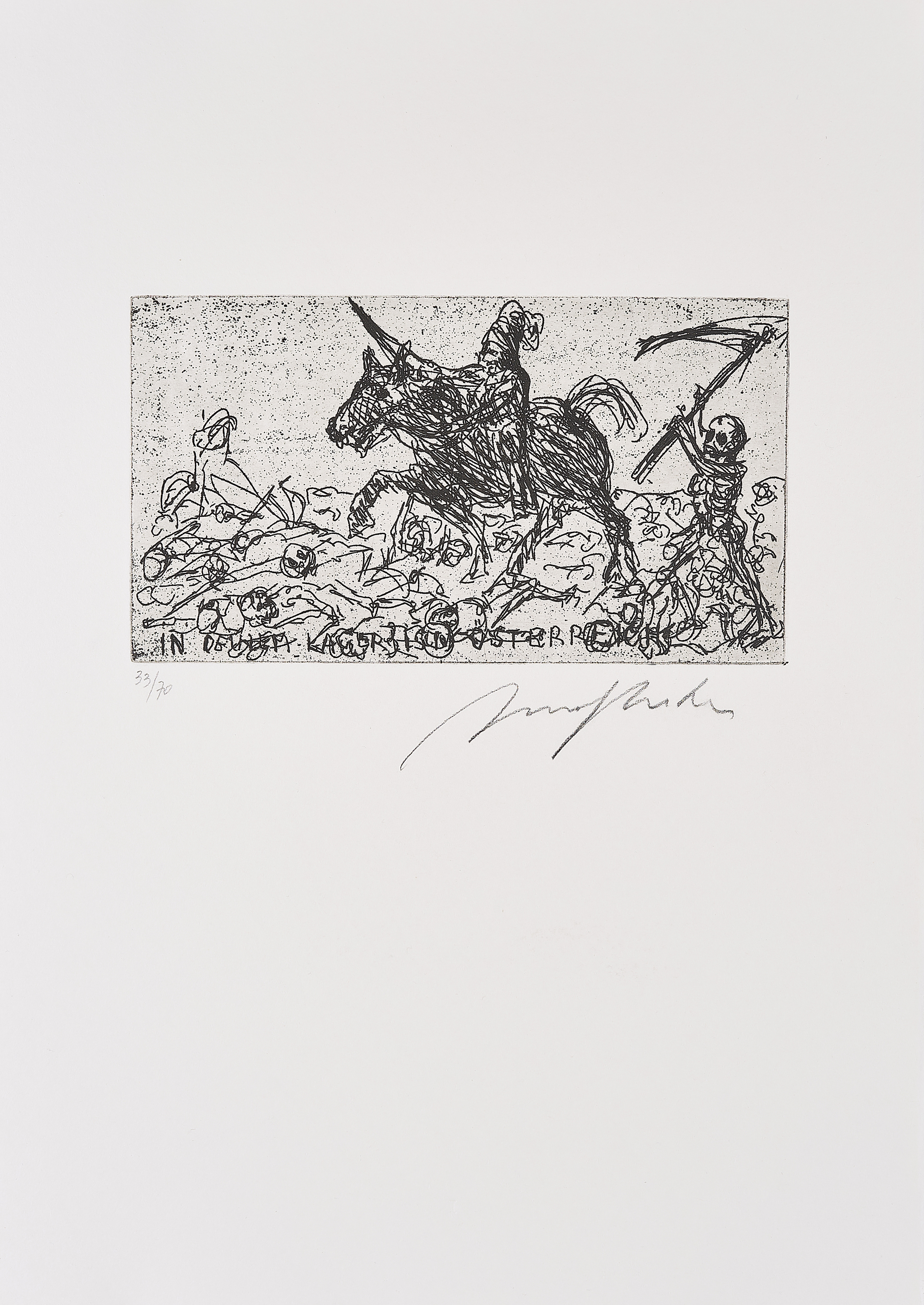 Die Ausgabe mit 48 Radierungen zu einem Text von Peter Sichrovsky erschien anlässlich des 150-jährigen Gedenkens an die Revolution von 1848/49. Im Impressum signiert von Künstler, Autor und Herausgeber.