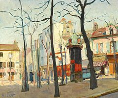 Klarer Wintertag in Paris. Öl auf Leinwand. Auf Karton gezogen. 33 x 39,5cm. Unten links: A. Iker. Rahmen.