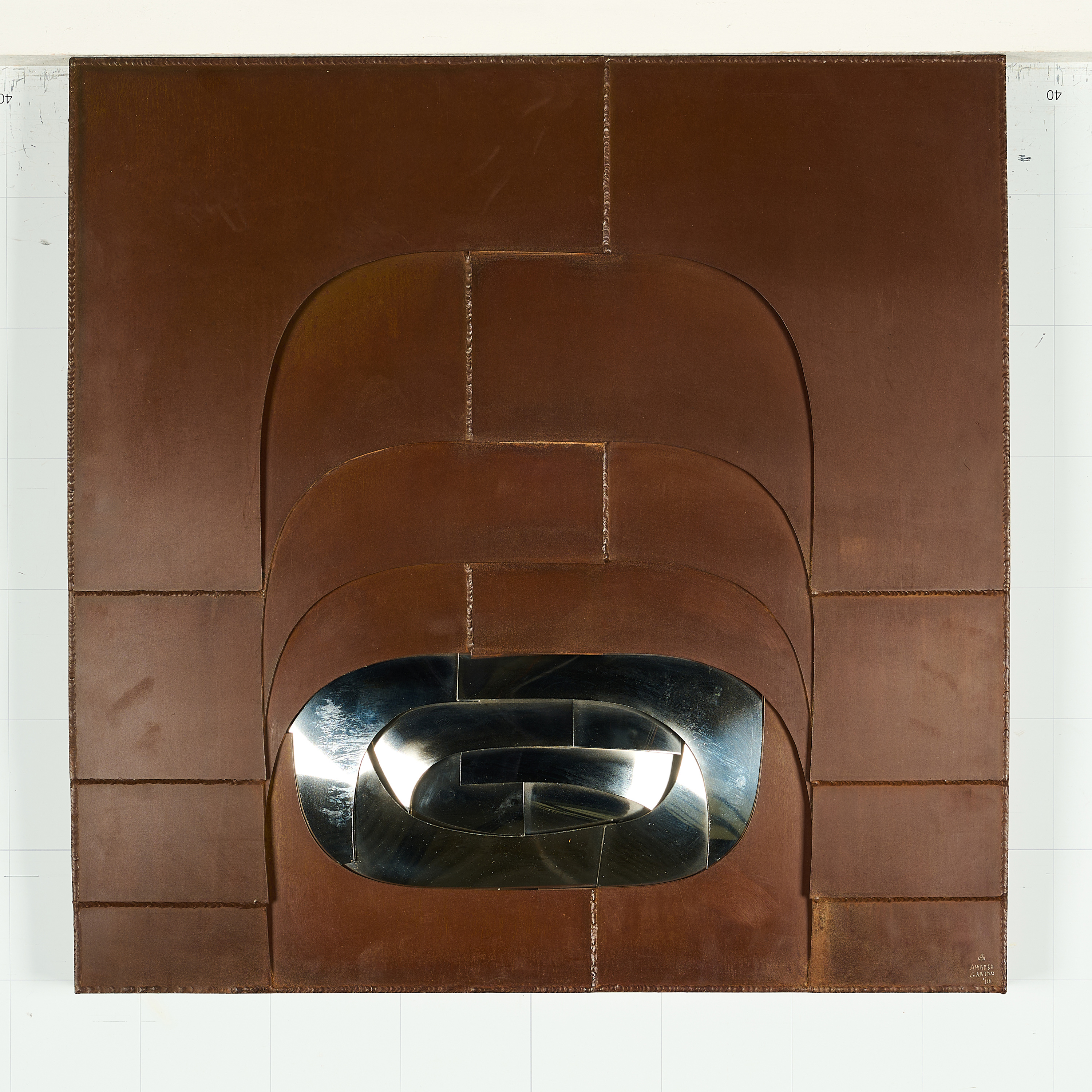 Technik: Cortenstahl und polierter Stahl.