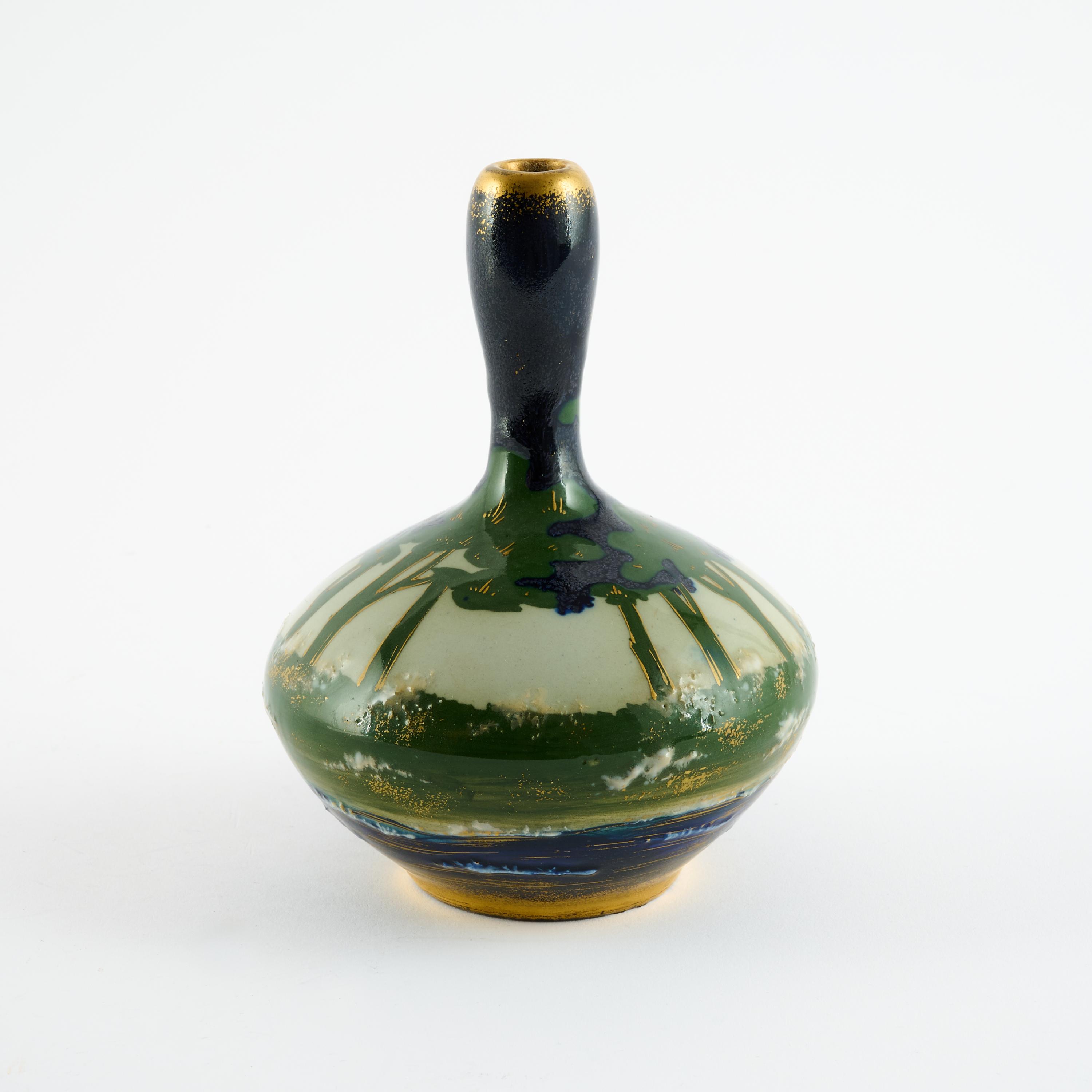 Material: Edelsteinporzellan, farbige Unterglasurbemalung, Reliefgoldauftrag, weißer Emaildekor.