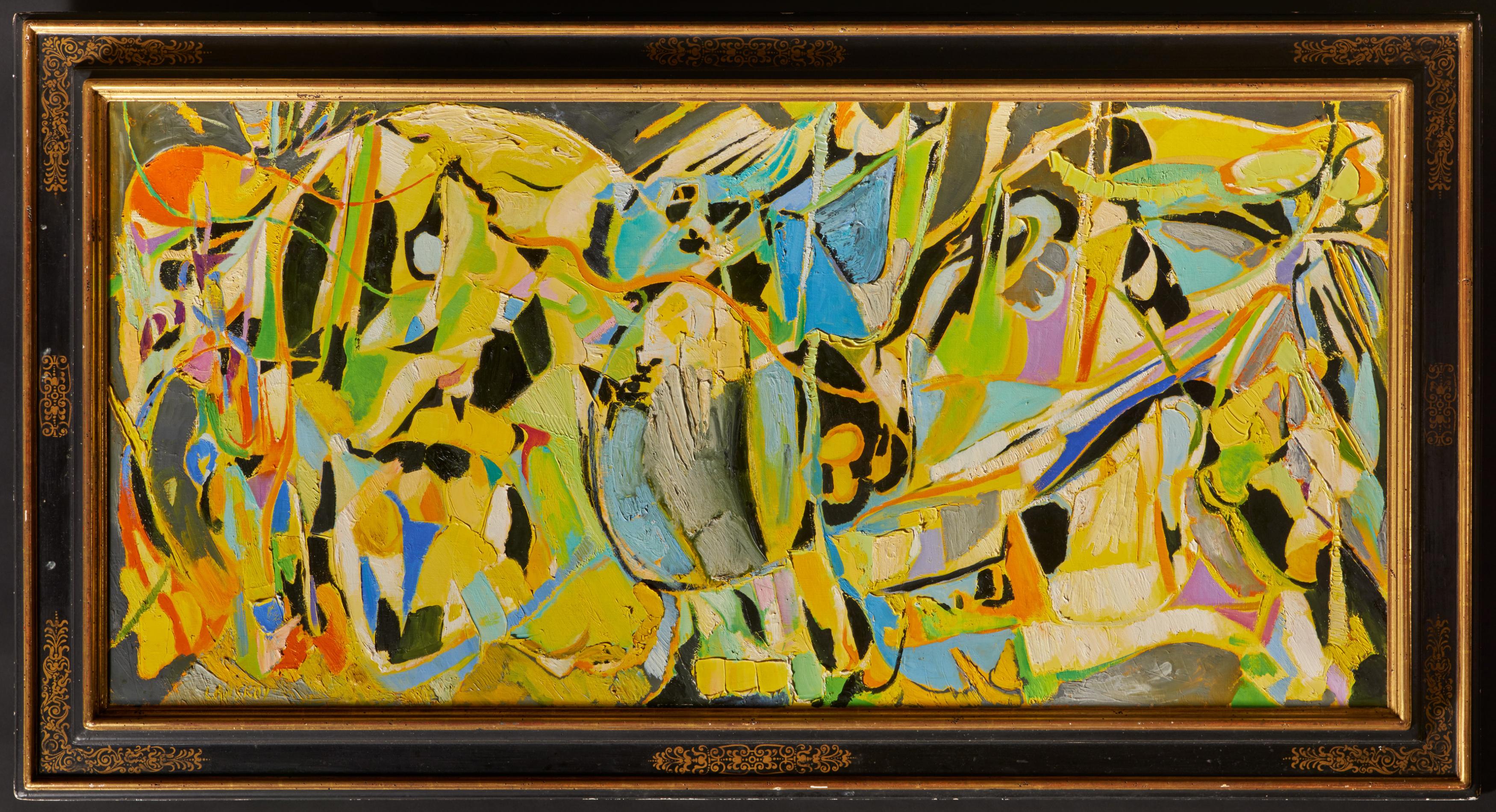 Die hier angebotene großformatige Arbeit ist ein herausragendes Exemplar des Spätwerks des Künstlers, das vollständig der Abstraktion gewidmet ist. Den Arbeiten des Künstlers haftet eine gewisse Poesie an, die aus einer farbenfrohen und dynamischen Welt entspringt. Das Zusammenspiel von Form und Farbe wurde zum Hauptthema seines Oeuvres. Lanskoy nimmt die Betrachtenden mit in seine heitere Farbwelt.