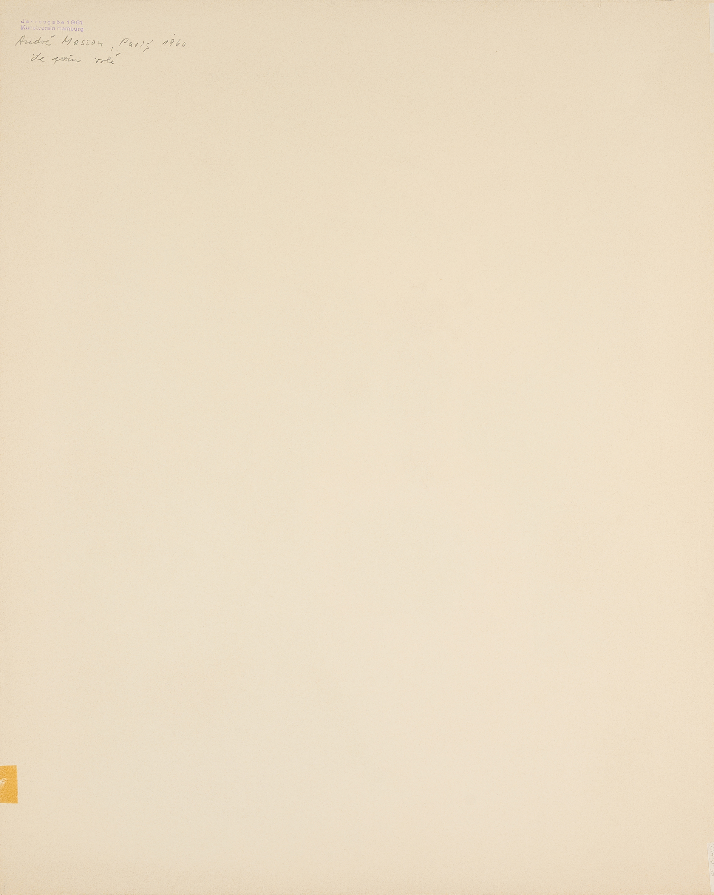 Verso mit dem Stempel des Herausgebers. Jahresgabe des Herausgebers für das Jahr 1961.