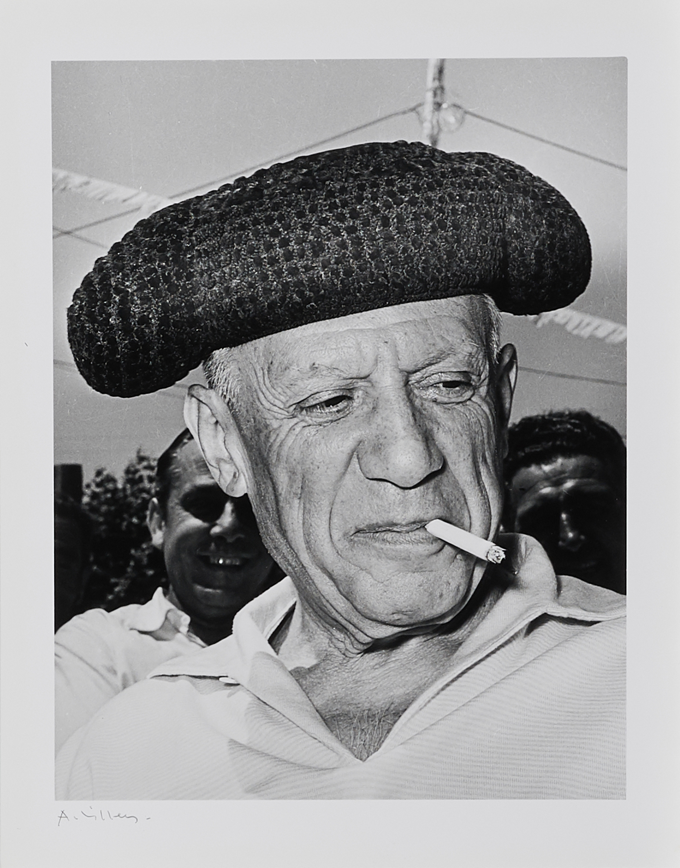 Picasso en toréador. 1954. Späterer Gelatinesilberabzug auf Papier. 26 x 20cm (30 x 24cm). Signiert und verso mit dem Stempel des Fotografen versehen.