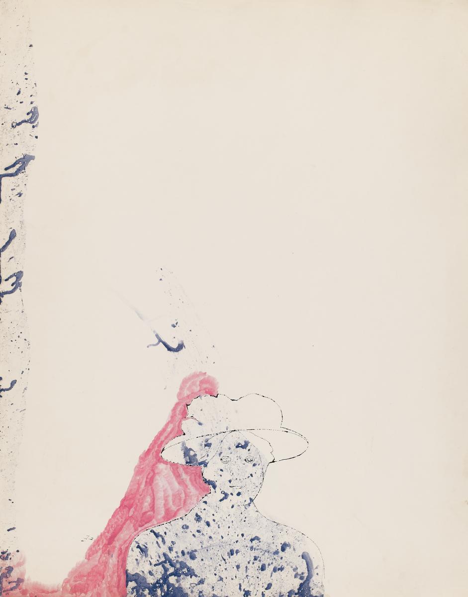 Ohne Titel (Female bust with marbelized background). Ca. 1953. Tinte und Tempera auf Strathmore seconds (Trockenstempel). 72,3 x 57cm. Rahmen.