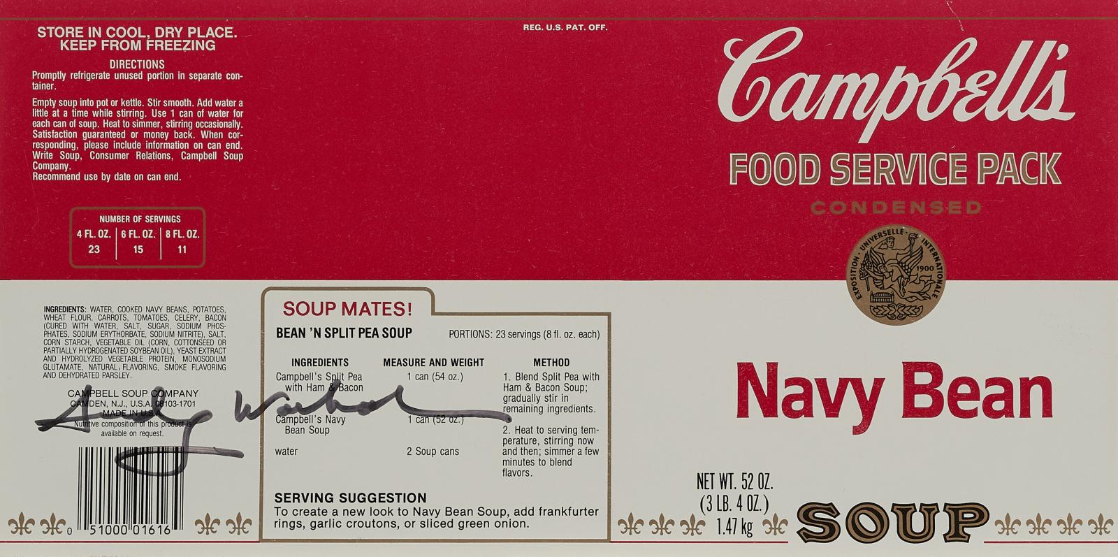 Campbell's Navy Bean Soup Label. Campbell's Label, Offset auf Papier. 16,5 x 33,5cm. Signiert mittig links: Andy Warhol.