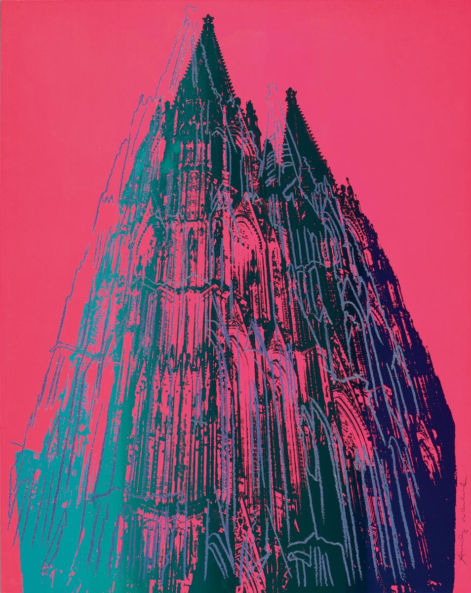 Cologne Cathedral. 1985. Farbserigrafie und Diamantstaub auf Lenox Museumskarton. 100 x 80cm Signiert. Hermann Wünsche, Bonn/New York (Hrsg.). Rahmen. - Rahmungsbedignt leichte Oberflächenbereibungen an den Kanten. Minimale, nur im Streifenlicht sichtbare, Oberflächenbereibungen im pinken Farbbereich. Fingerabdruck(?) neben der Signatur. Verso Farbspuren und leichte Verschmutzungen.