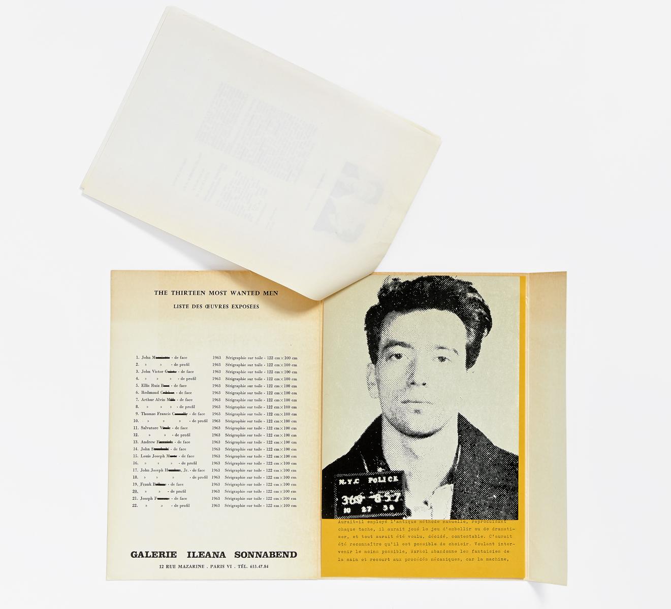 Dossier No 2357 / Andy Warhol - The THIRTEEN Most Wanted (Men). Ausstellungskatalog. 1967. Umschlag mit fünf bedruckten Seiten (davon 2 farbige) sowie eine Serigrafie; zusammen