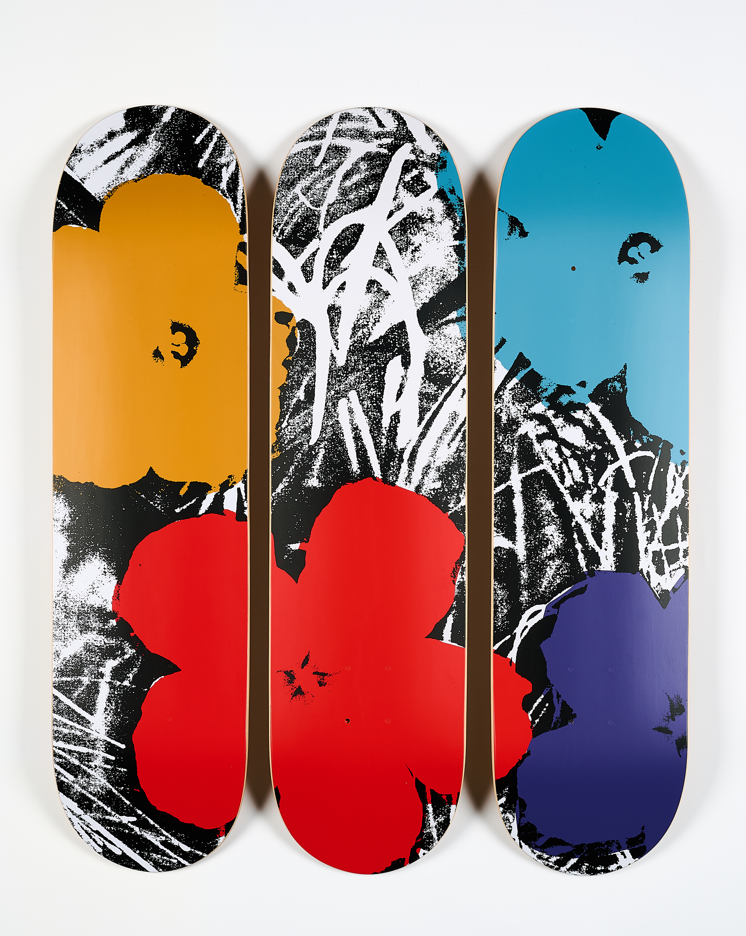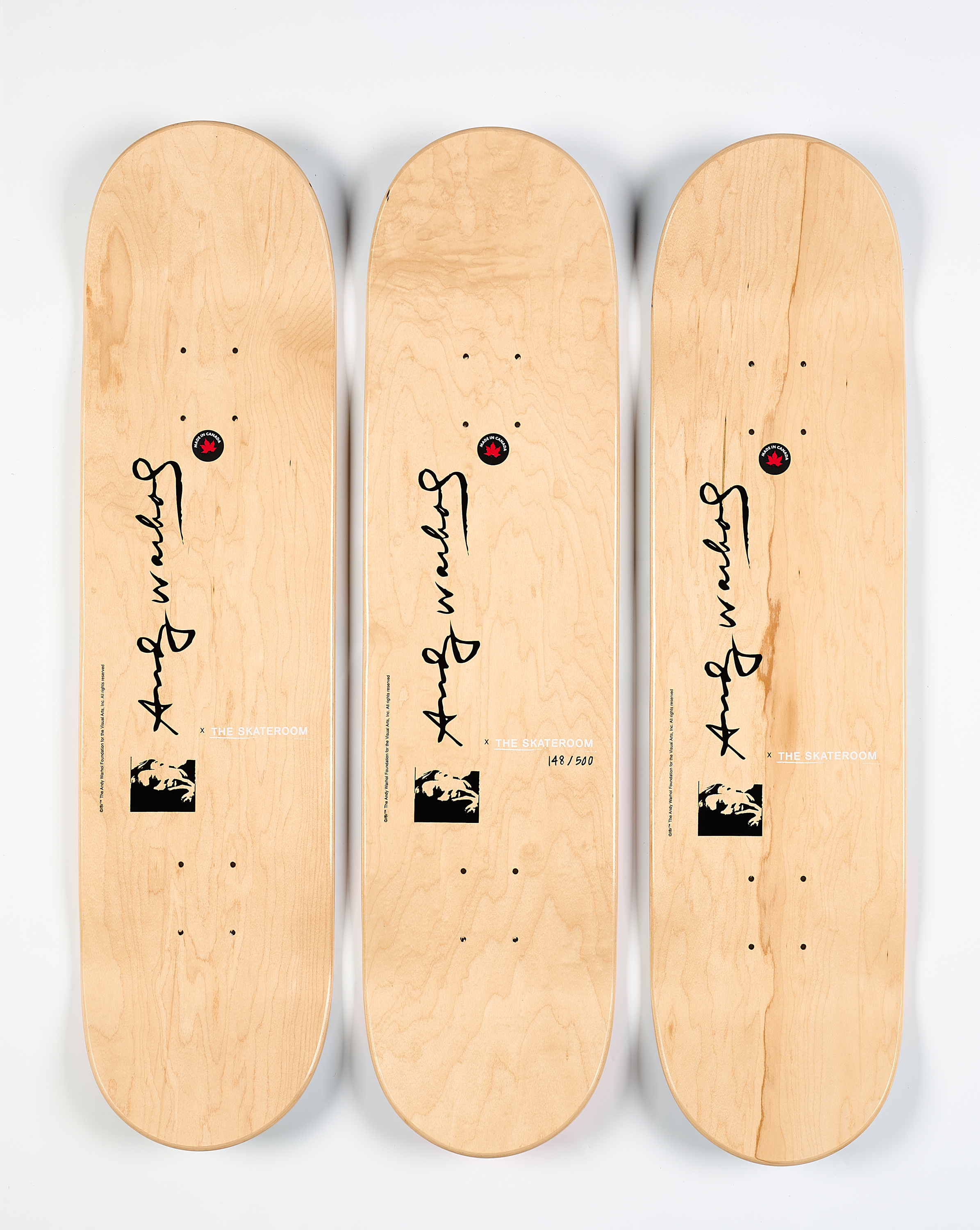 Technik: Farboffset auf 3 Skateboard-Decks aus kanadischem Ahorn. Mit Wandaufhängung und Tragetasche.