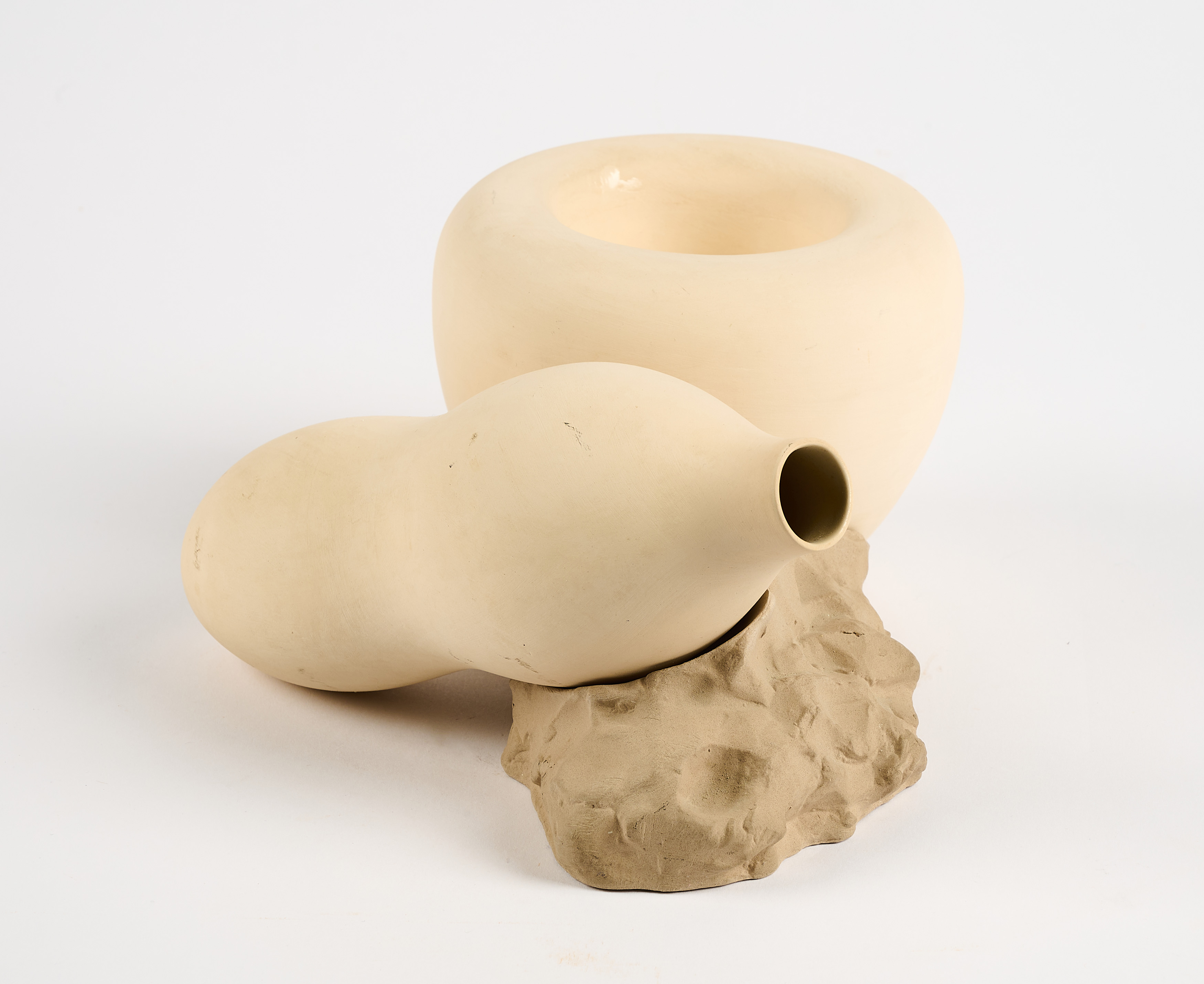 Technik: Zwei Tongefäße und ein Terrakotta-Sockel.