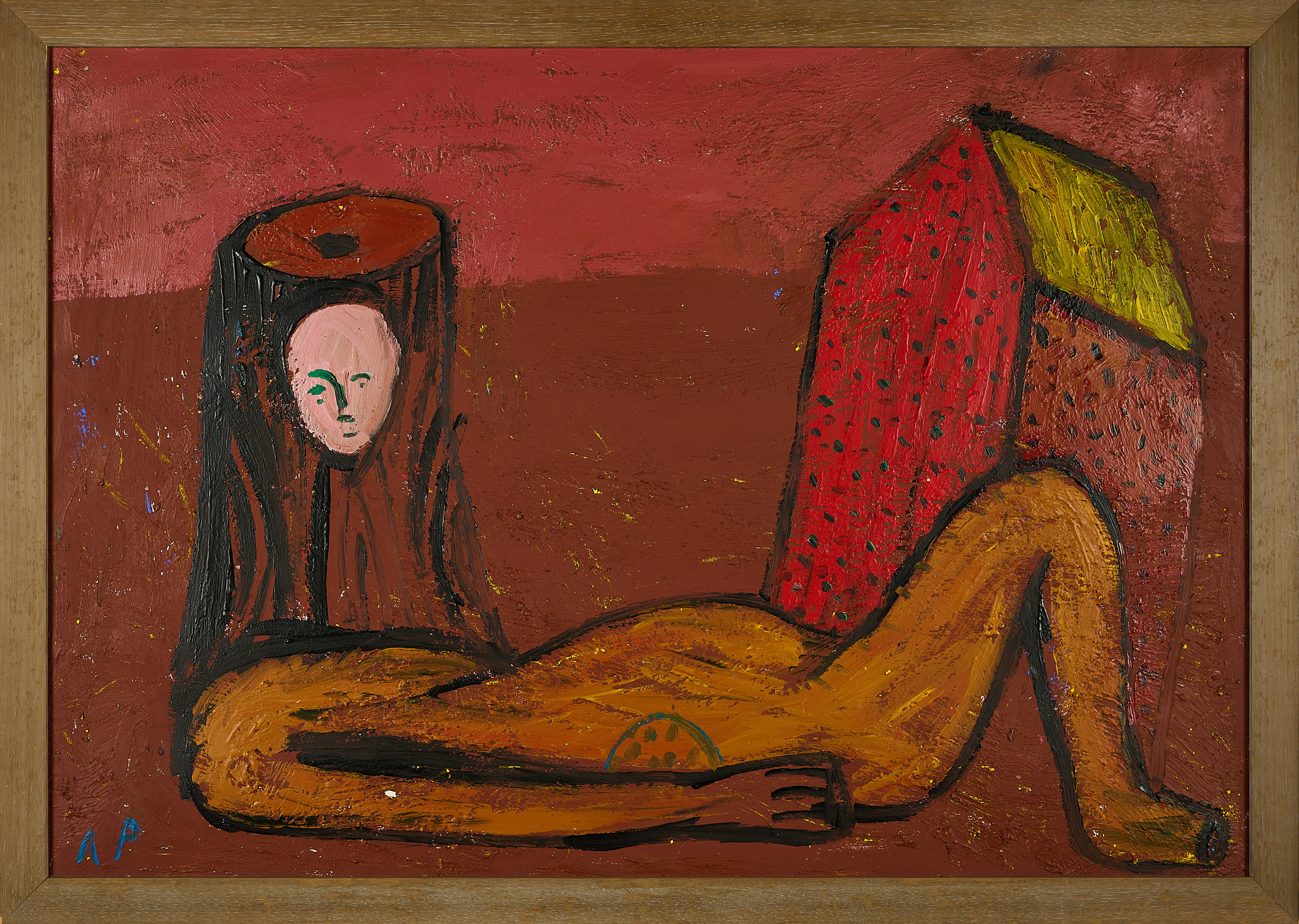 Papier wölbt sich leicht hoch. Ansonsten guter Zustand. Das Werk wurde für die Katalogbeschreibung nicht ausgerahmt.