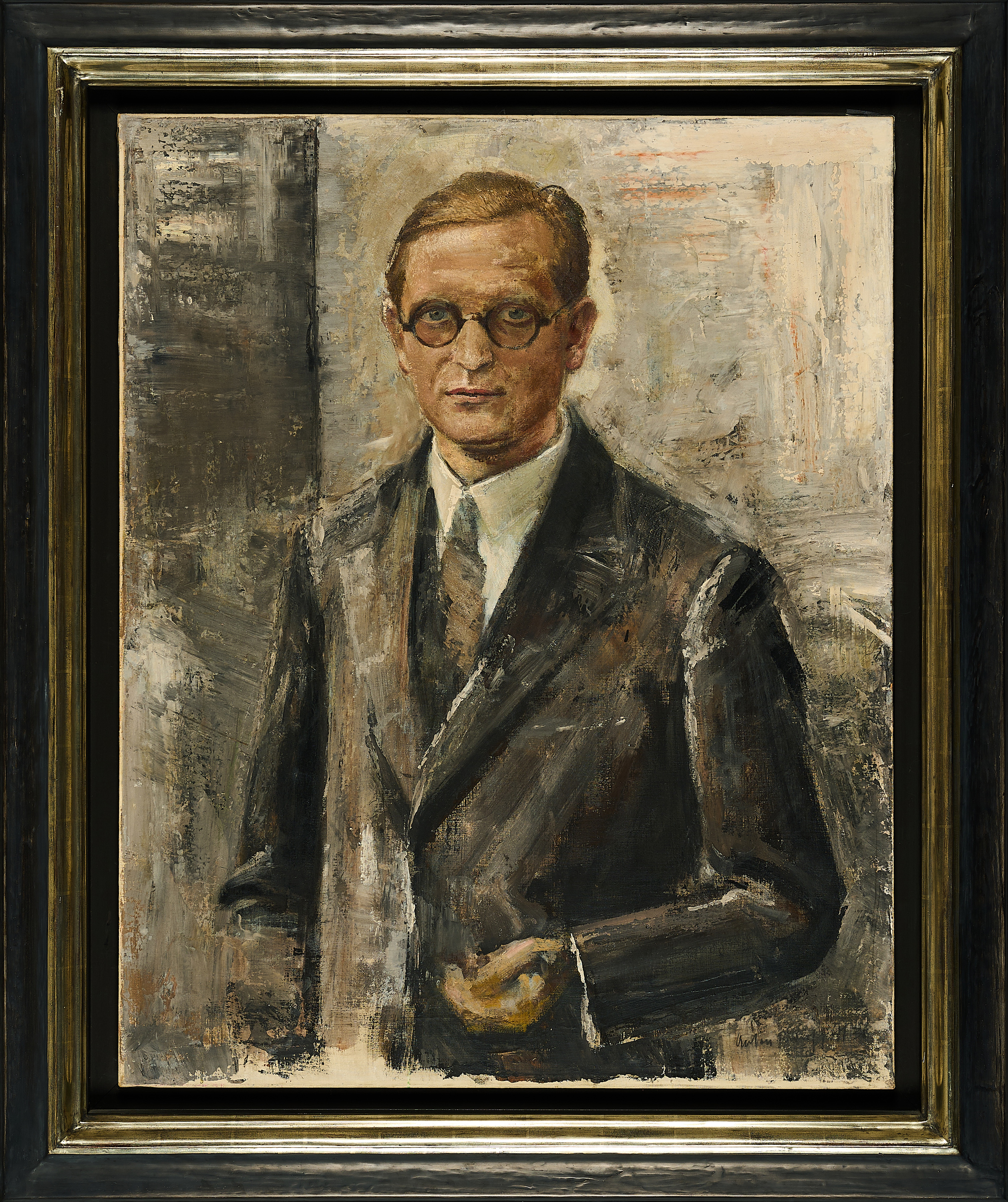 Vereinzelt minimales Krakelee. Kleiner Farbausbruch an der Unterkante, rechts der Mitte (ca. 0,2 x 1,5cm). Vereinzelt minimale Verschmutzungen. Ansonsten sehr guter Zustand. Im Rahmen beschrieben.