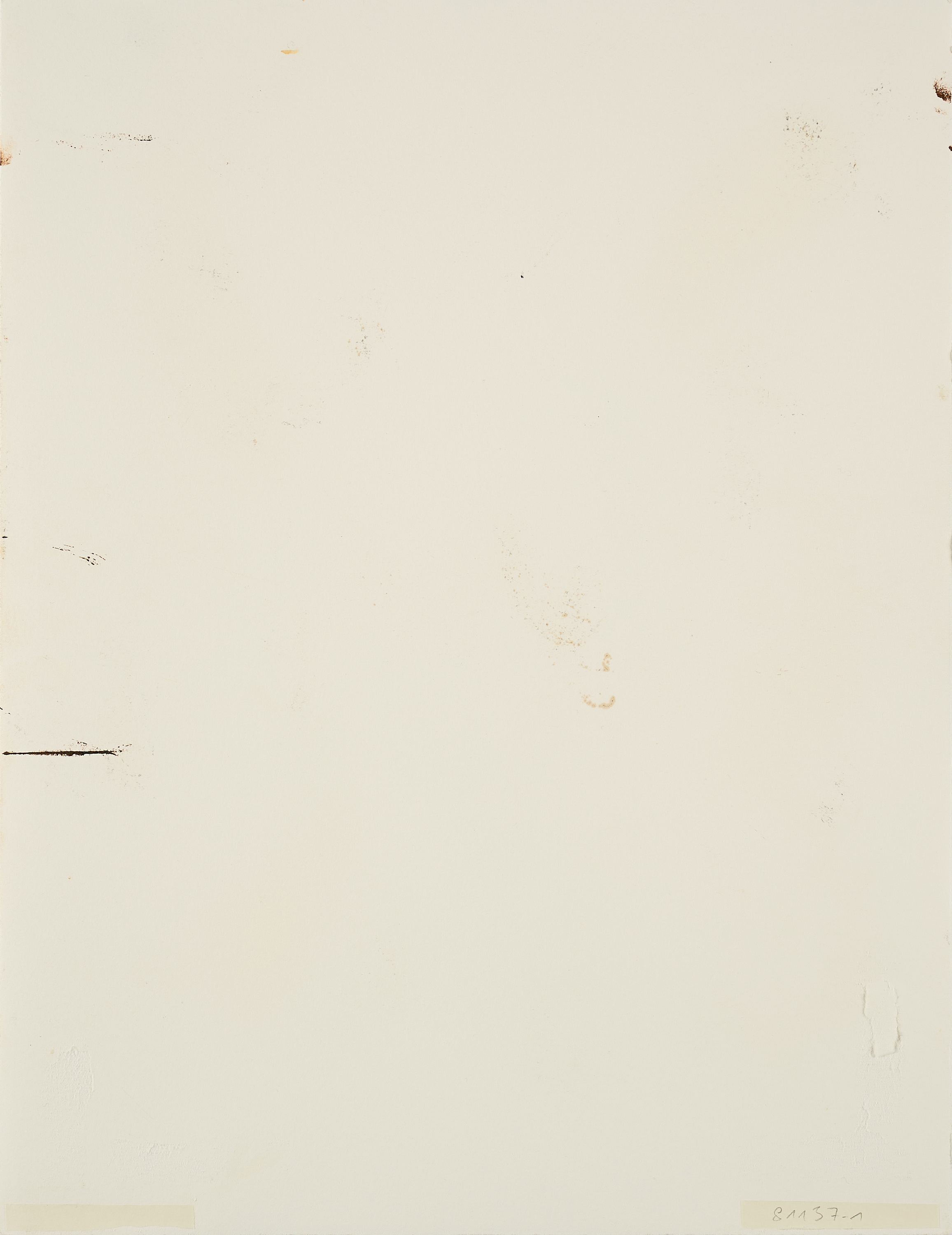 Herstellungsbedingt minimal gewellt. Verso Arbeitsspuren und Reste alter Montierung. Im Inneren des zusammengeklappten Bogens Arbeitsspuren. Ansonsten sehr guter Zustand.