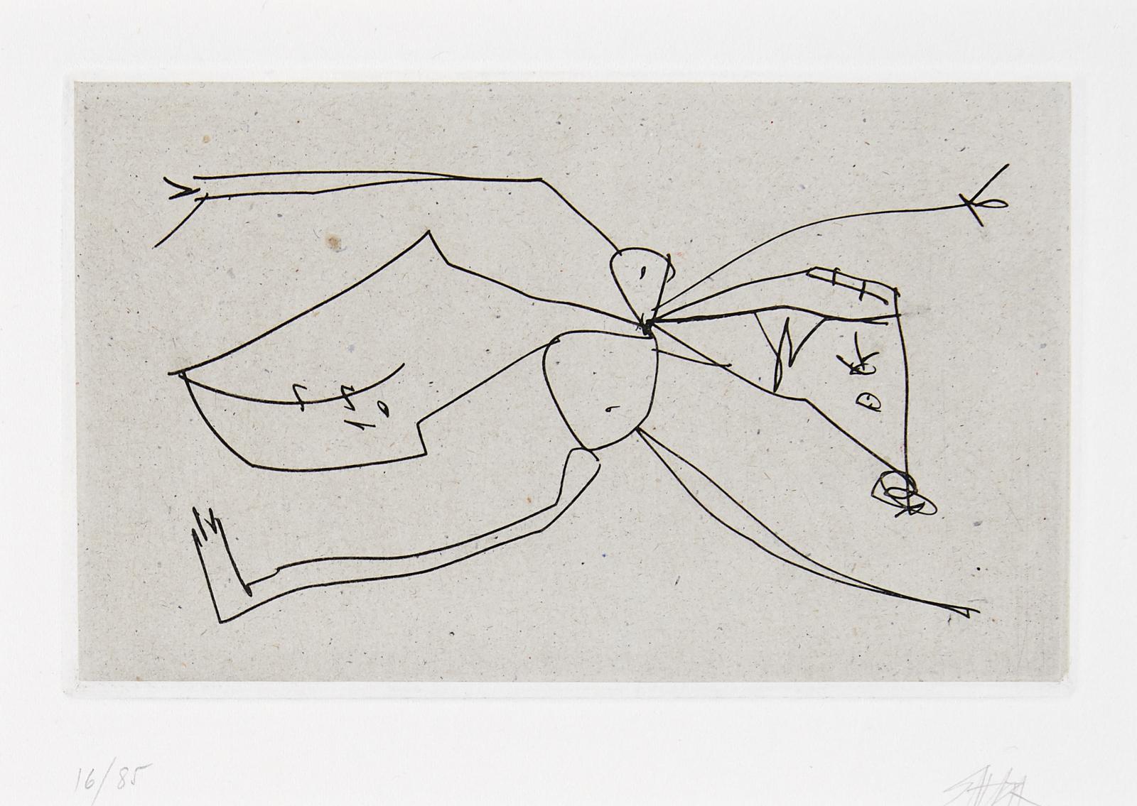 Aus: "La cámara ardiente o los amores célebres". 1977. Vier Radierungen auf Velin. Blatt jeweils: 8,3 x 14,3cm (21,5 x 27,5cm). Jeweils signiert