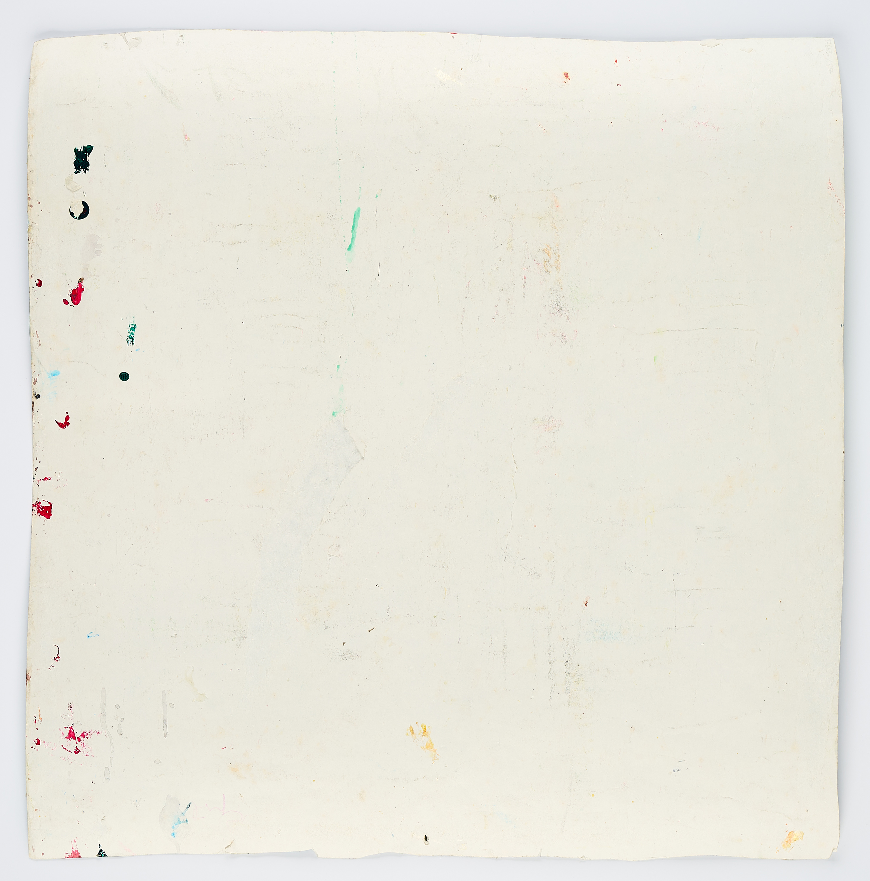 Blatt ehemals gerollt, daher minimal gewölbt. Minimal bestoßene und verschmutzte Blattkanten. Nagelloch oben mittig. Vereinzelt kleine Einrisse an den Kanten (jeweils ca. 0,7cm). Vereinzelt minimale Bereibungen an den Kanten. Verso Arbeitsspuren, minimale Verschmutzungen und eine Bereibung. Ansonsten guter Zustand.