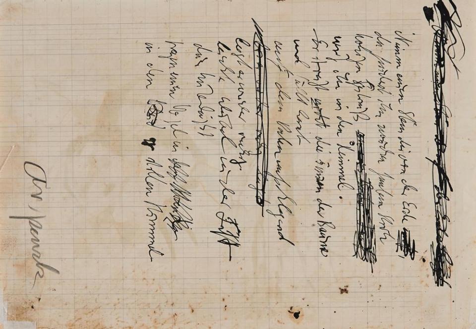 Verso befindet sich ein handschriftliches Gedicht, das unten rechts signiert ist.