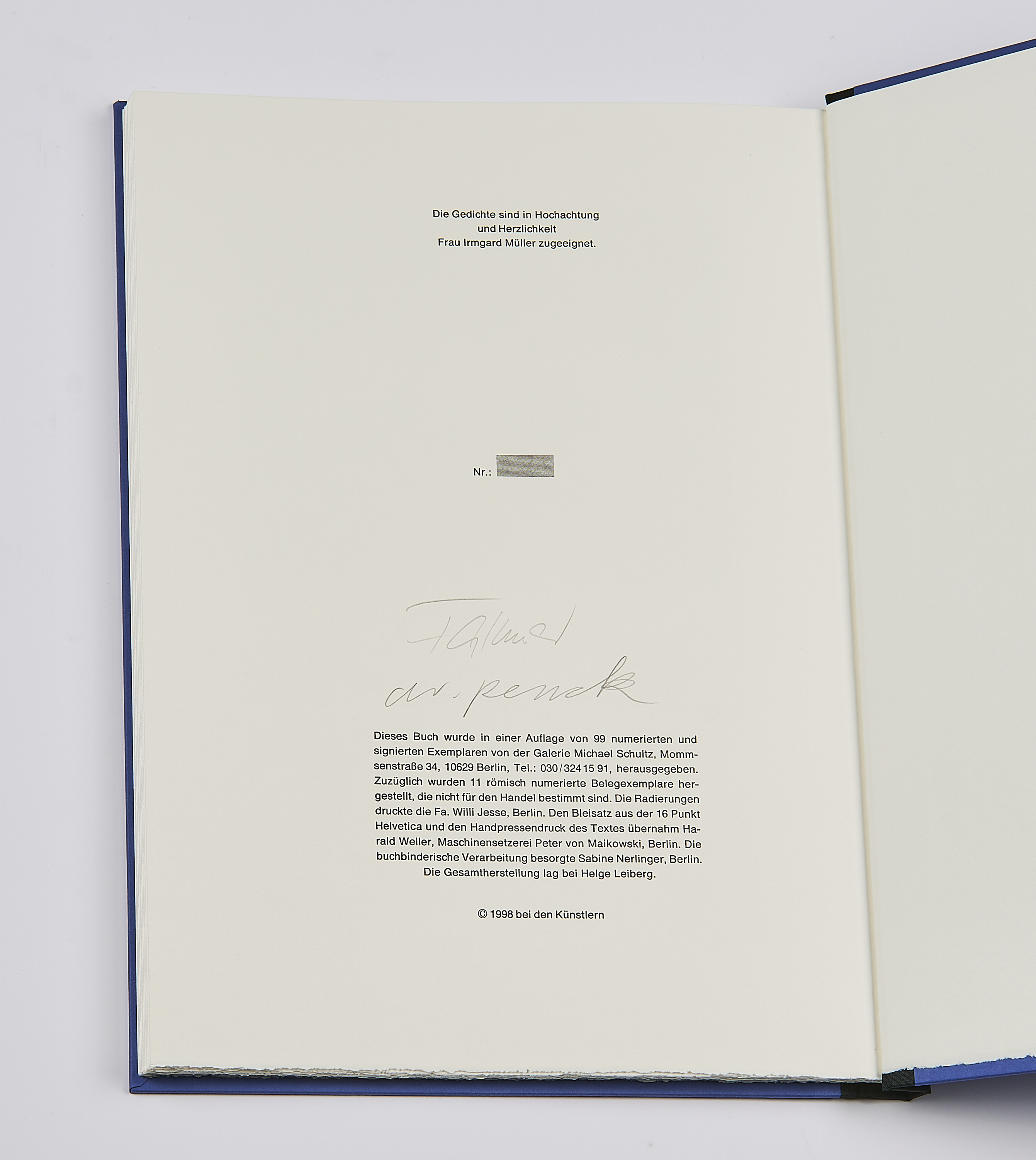 Technik: Mappe mit 9 Farbradierungen auf Velin, eingebunden in Publikation.
