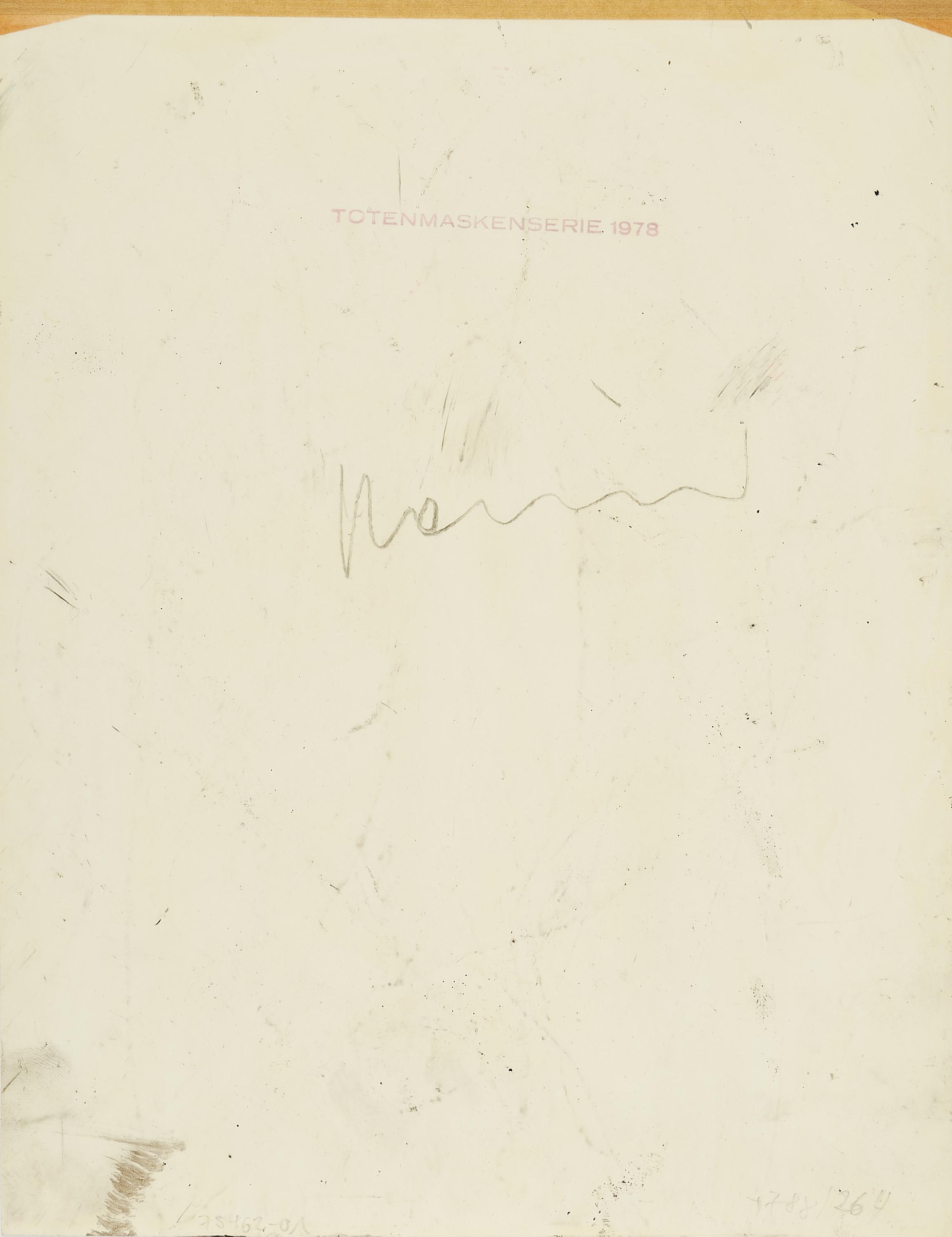 Bezeichnung: Monogrammiert unten links: AR. Sowie signiert verso: Rainer und mit typografischem Eindruck versehen: TOTENMASKENSERIE 1978.