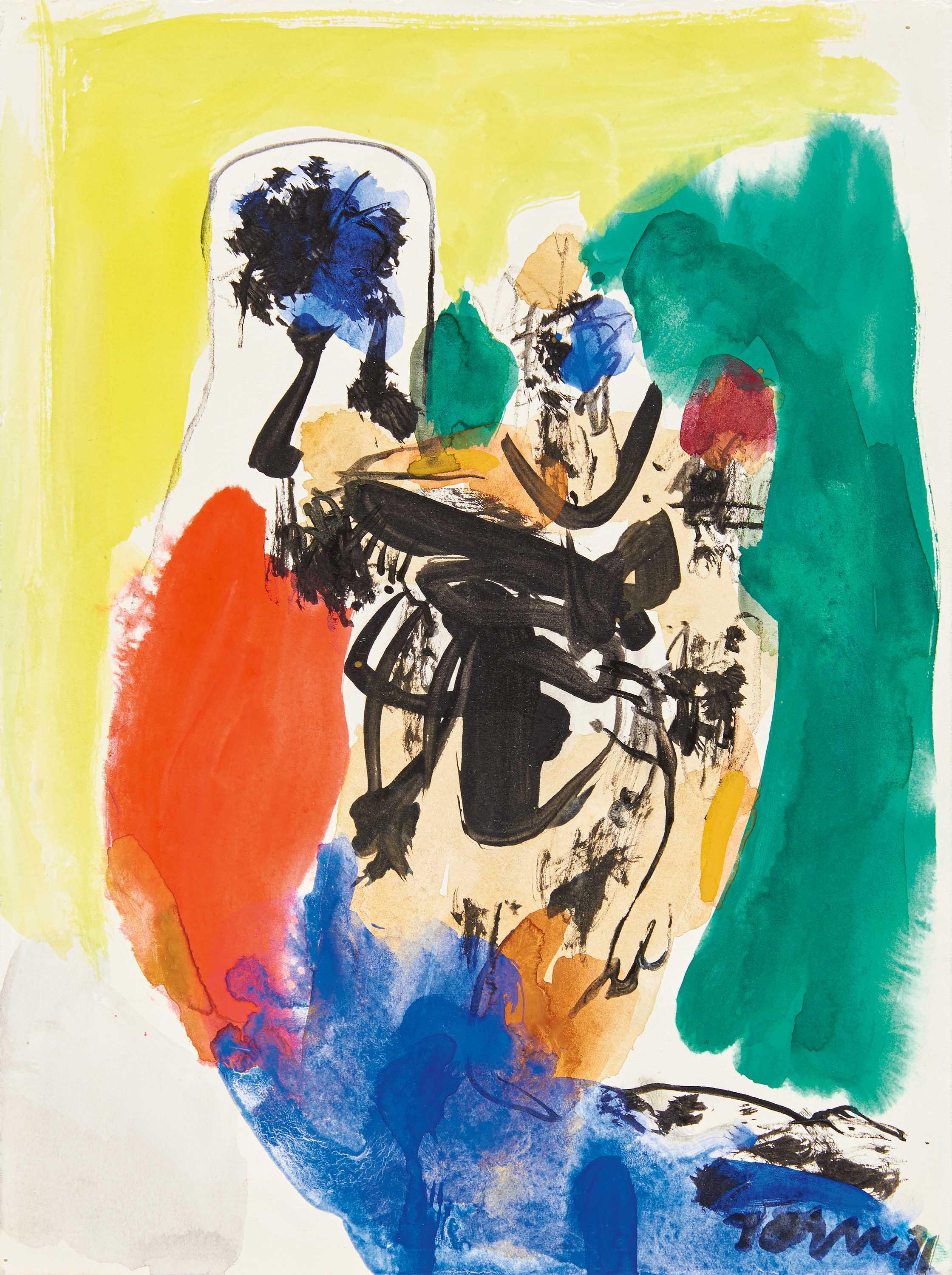Bezeichnung: Signiert und datiert unten rechts: Jorn 71. Betitelt und nochmals signiert und datiert verso: KOMMUNE Jorn 71.