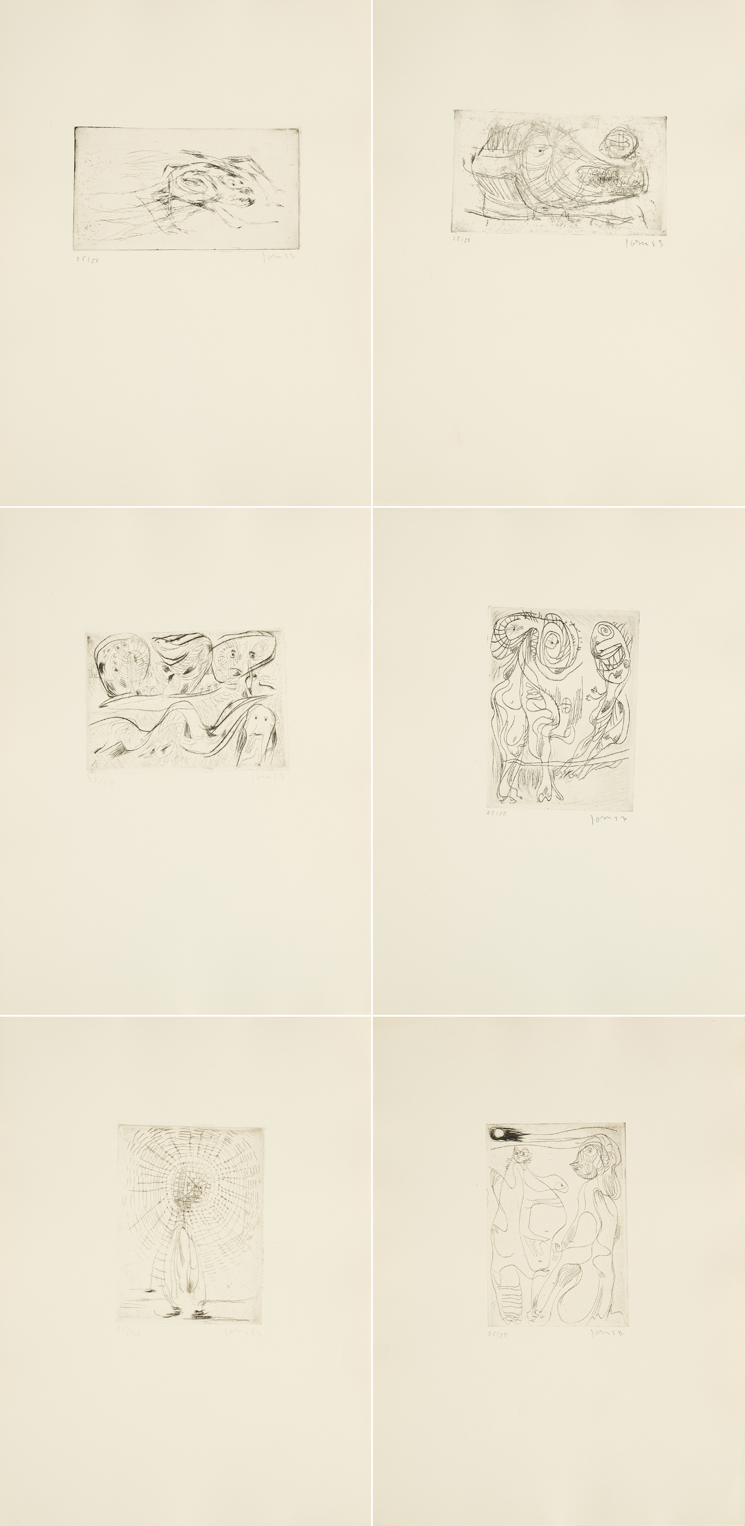 Die Radierungen entstanden in den Jahren 1953/54 in der Schweiz und wurden 1961 mit kleinen Veränderungen des Künstlers als Mappe noch einmal herausgegeben.