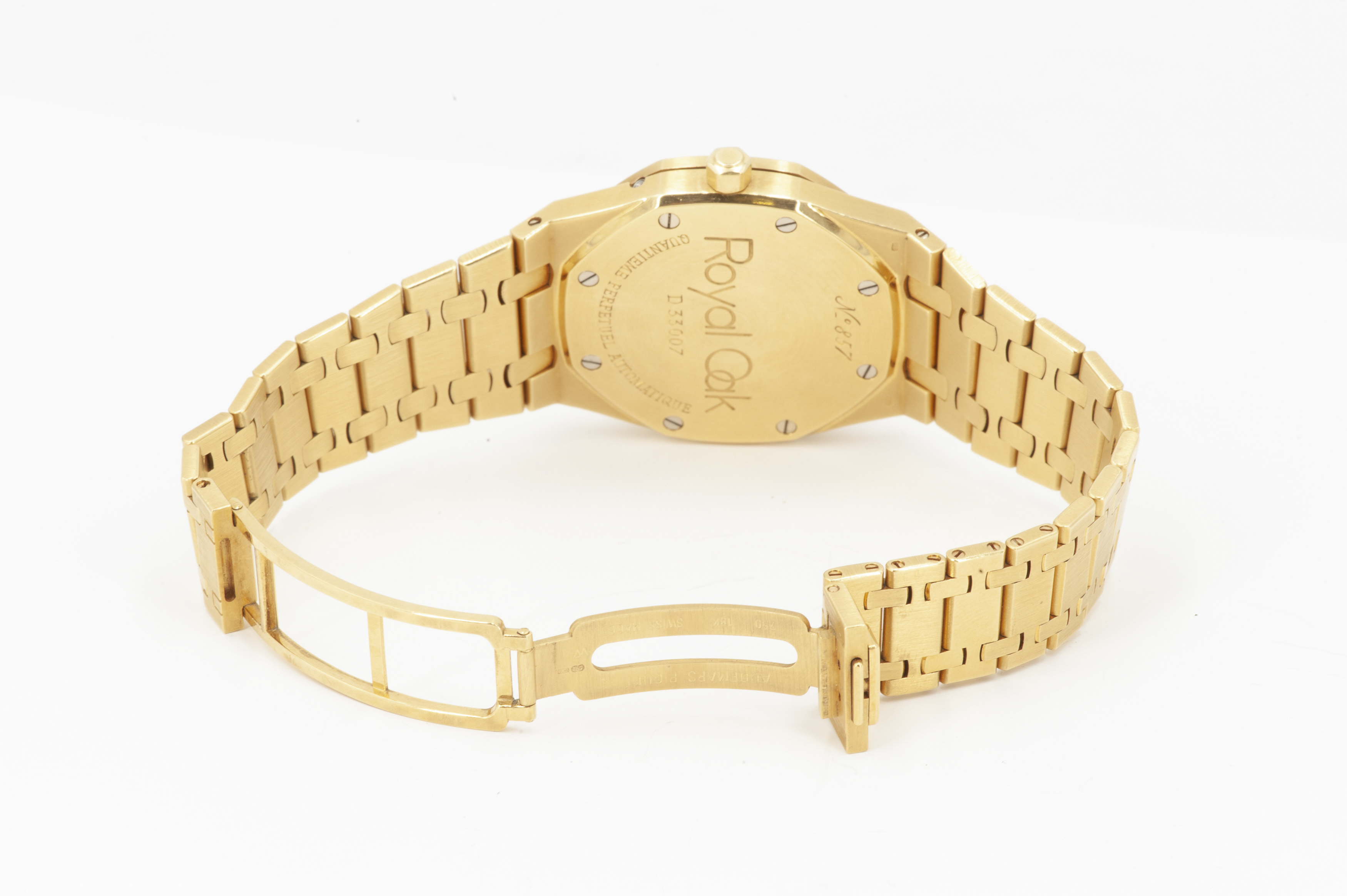 Gehäuse/Armband: 750/- Gelbgold, Gliederarmband mit Faltschließe, Zffbl. weiß, Indizes goldfarben, Zeiger gebläut bzw. goldfarben.