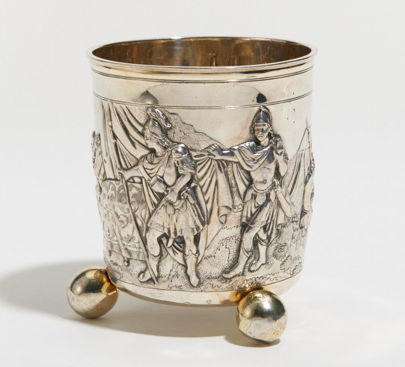 GROßER KUGELFUßBECHER MIT ANTIKISIERENDER SZENERIE.