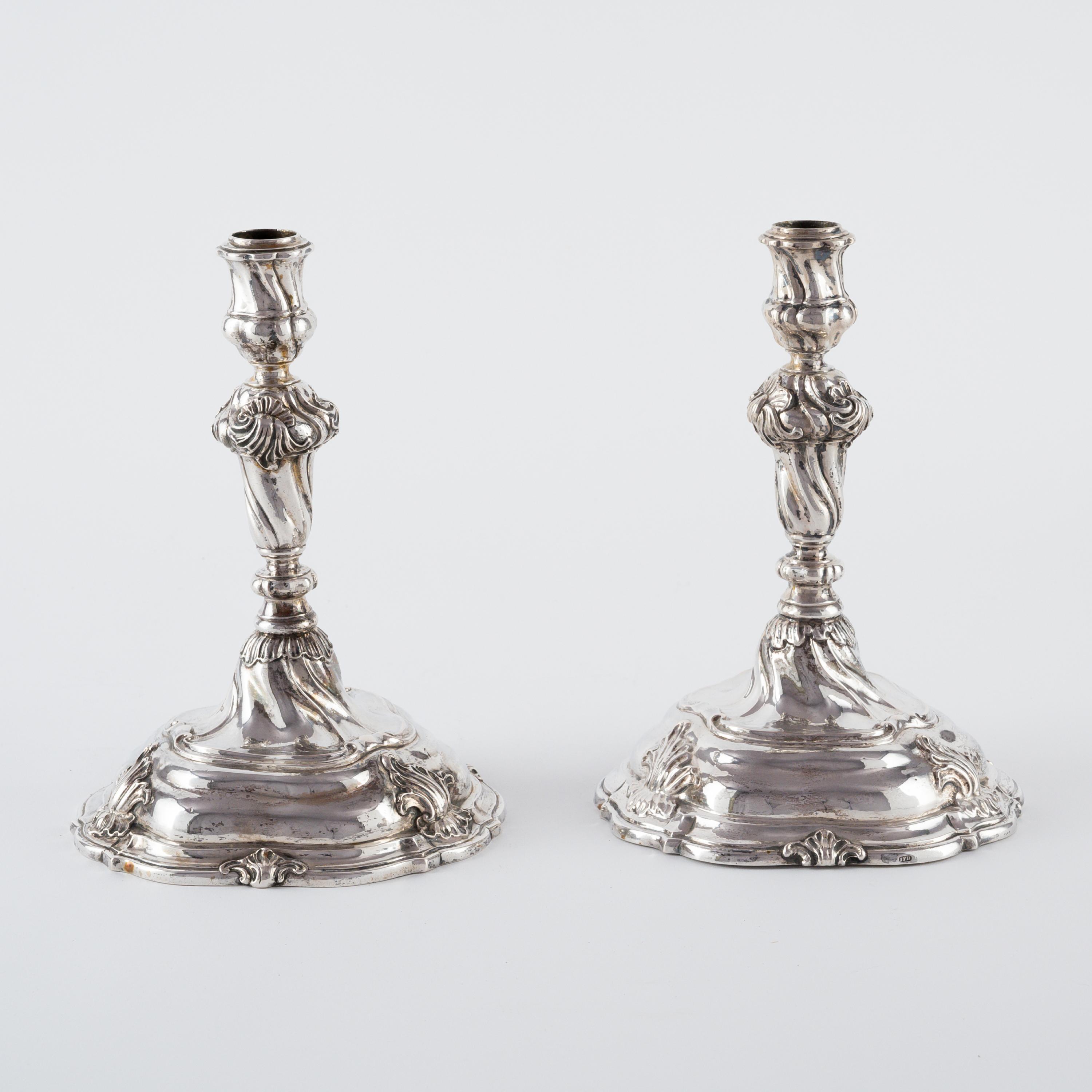 a) BZ Augsburg 1743-45 (Seling Nr.1920), MZ Salomon Dreyer (1735-62, ebd. Nr.2263). b) Ohne BZ, MZ Johann Philipp Heckenauer (1741-93, ebd. Nr.2332). Jeweils am Fußrand mit dem königlich sächsischen Wappen gestempelt.