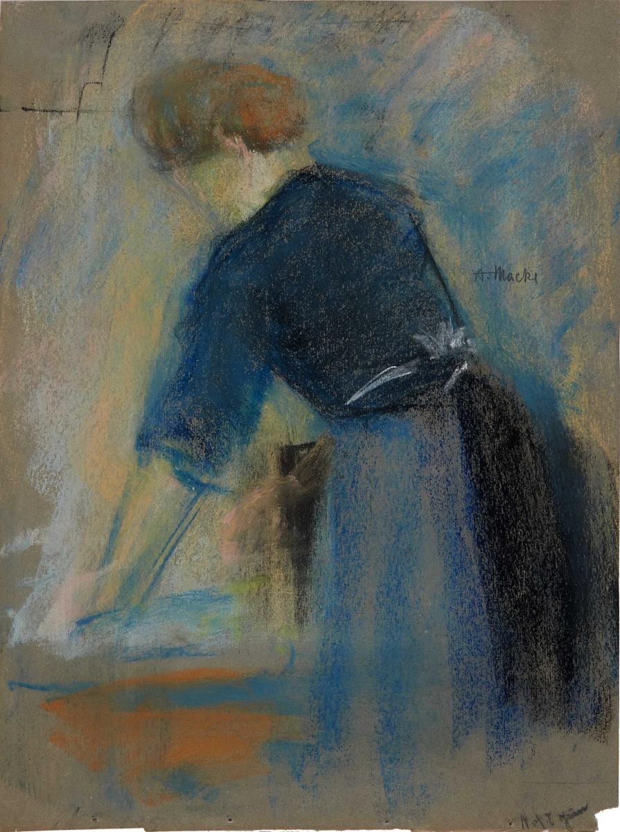 Bezeichnung: Signiert rechts neben dem Oberkörper: A. Macke. Unten rechts unleserlich bezeichnet.