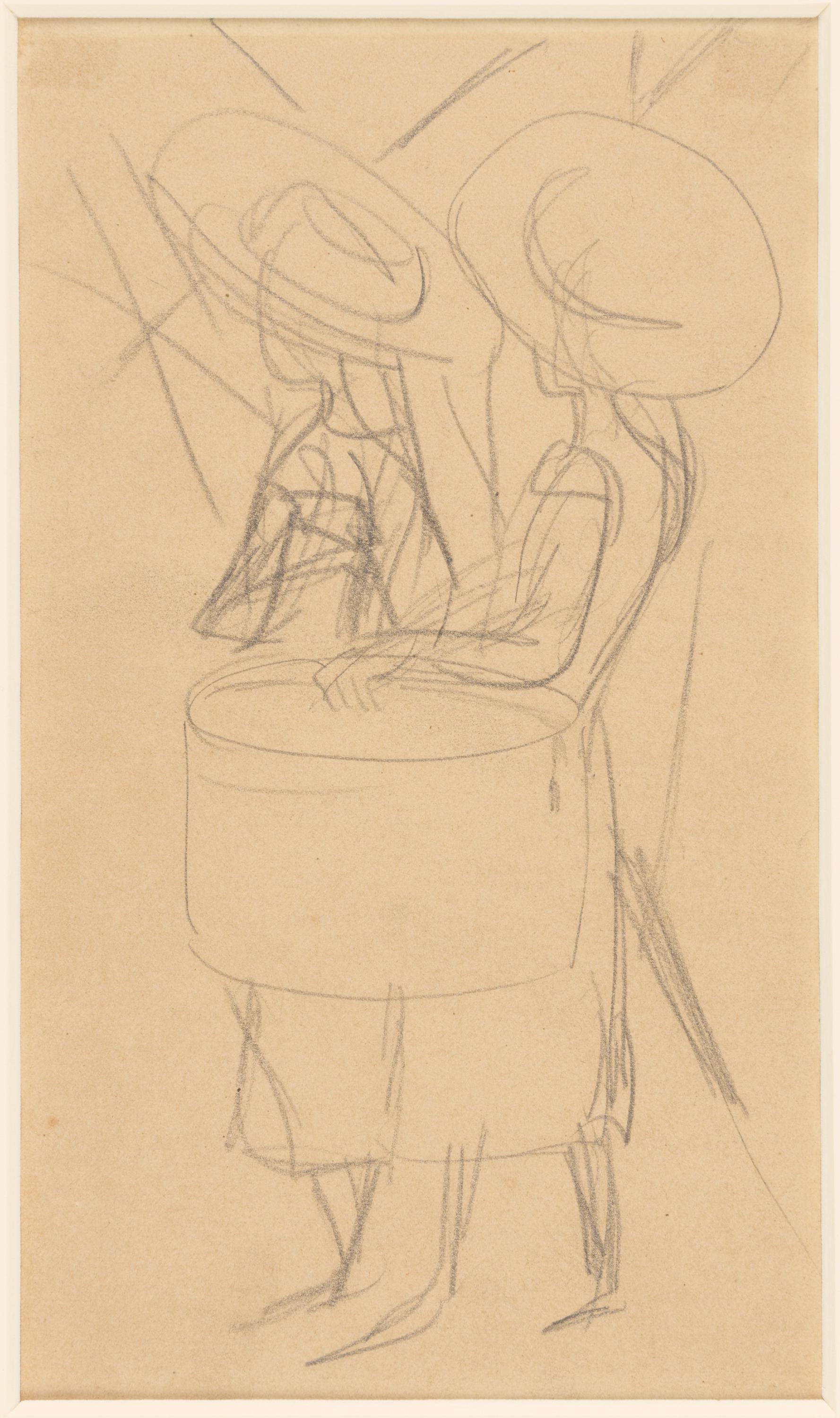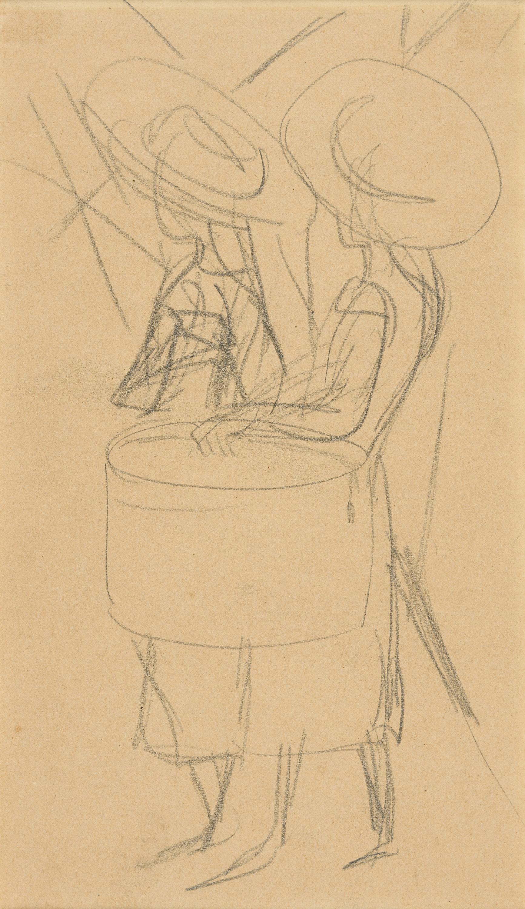 Bezeichnung: Nachlassstempel des Künstlers (Lugt L. 1775b) auf dem Untersatzkarton unten mittig mit eingetragener Nummer: BZ 5,8. Hier zudem von fremder Hand bezeichnet: August Macke 1912 Mädchen mit Hutschachtel.