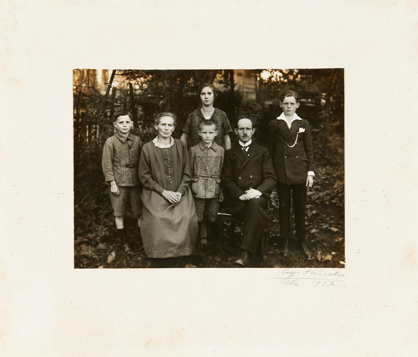 Ohne Titel. Familienportrait. 1927. Gelatinesilberabzug auf Rückkarton. 16,5 x 22,5cm (Rückkarton: 30 x 35,3cm). Signiert und datiert mit Bleistift.