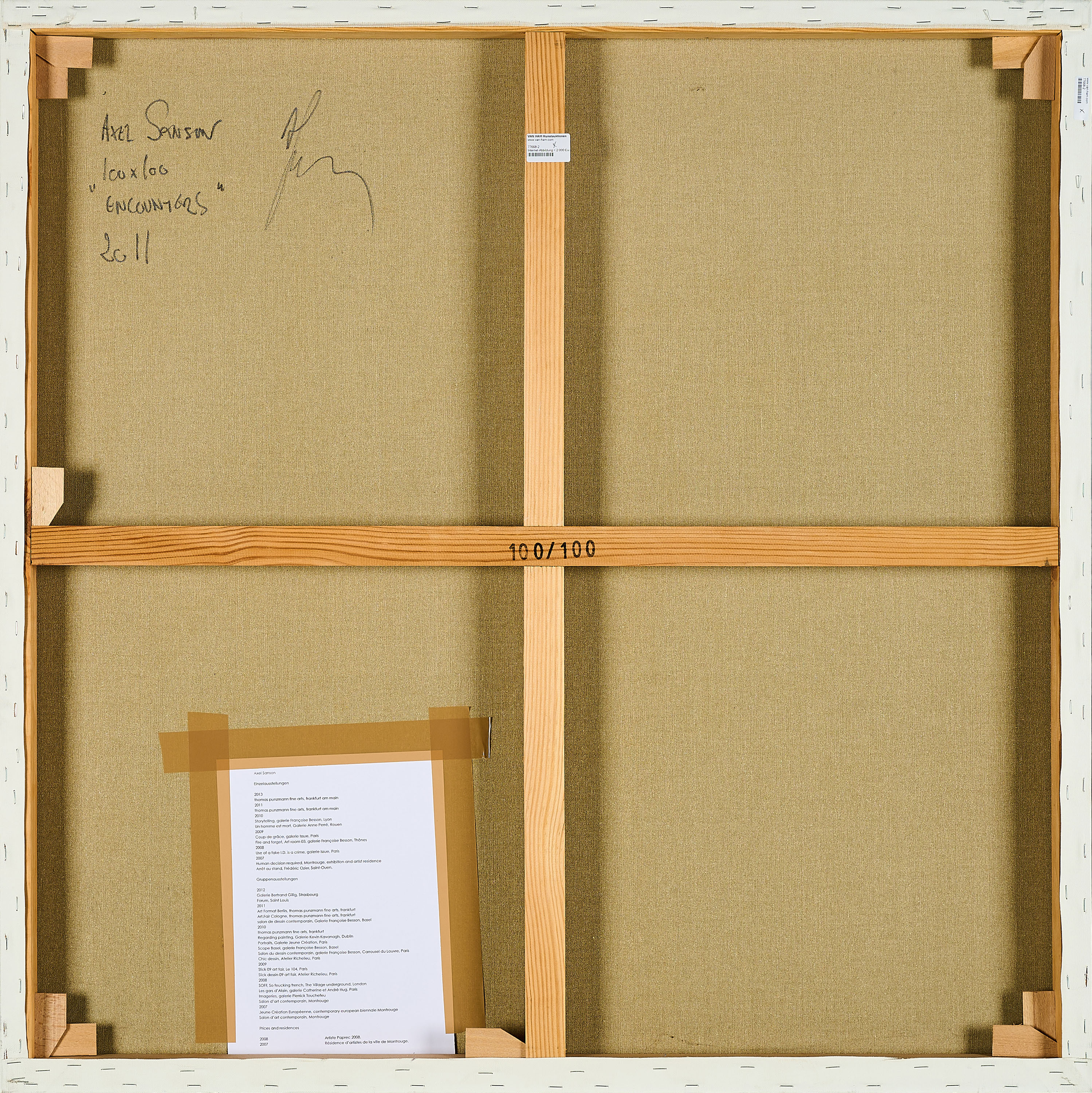 Bezeichnung: Signiert, bezeichnet, betitelt und datiert verso: Axel Sanson 100 x 100 "ENCOUNTERS".