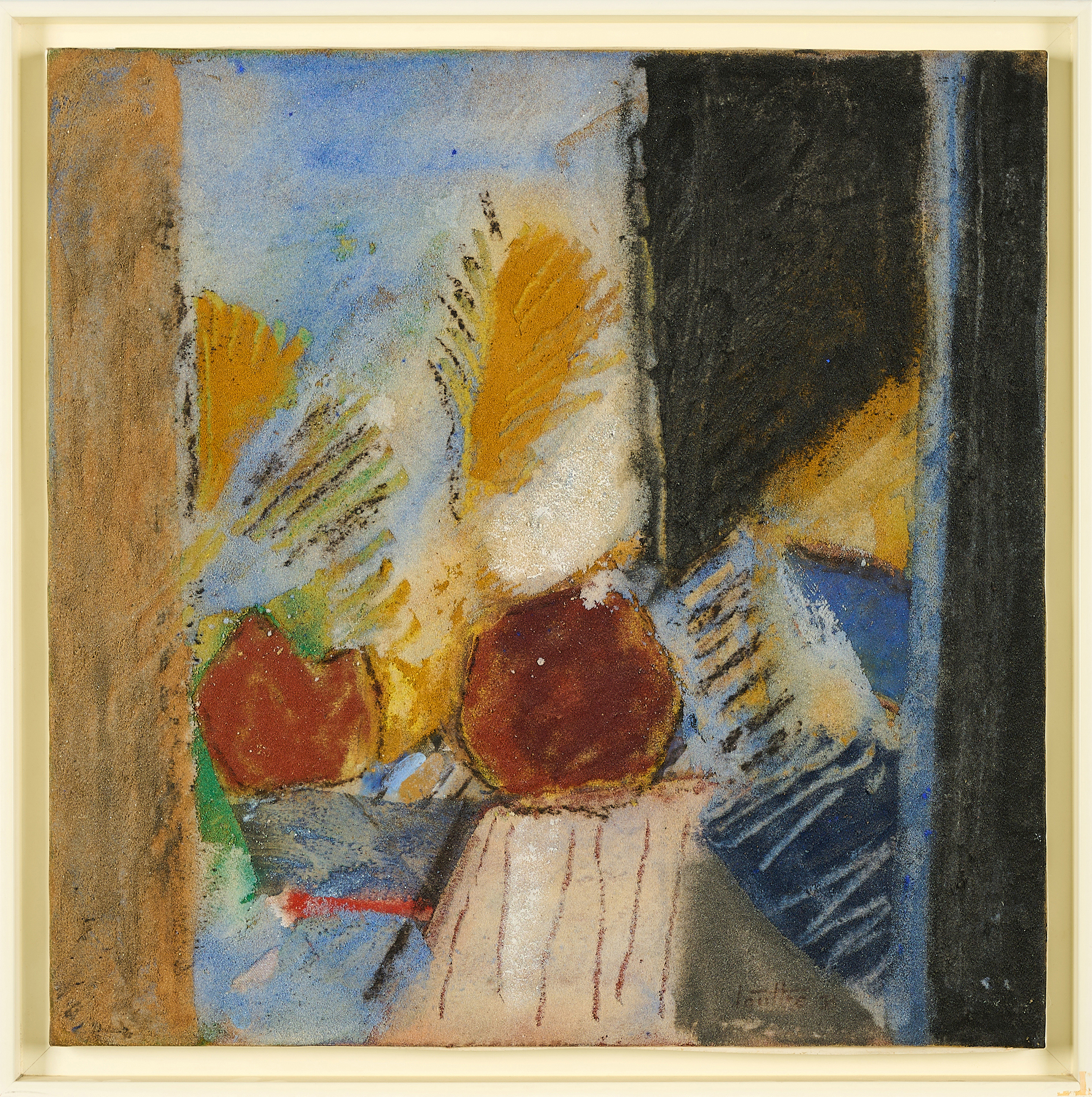 Umlaufendes Textilklebeband stellenweise gelöst. In der rechten unteren Ecke minimaler weißer Aufrieb. Ansonsten sehr guter Zustand. Das Werk wurde für die Katalogbeschreibung nicht ausgerahmt.