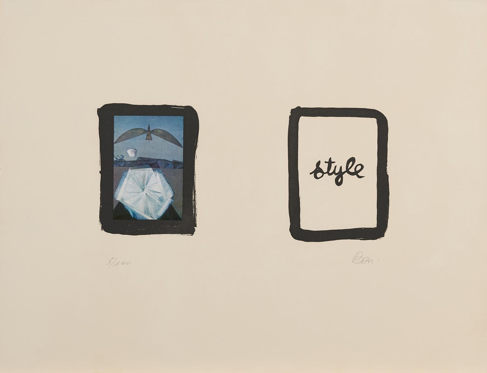Konvolut von 2 Arbeiten. a) Style. Lithografie und Collage auf ARCHES France (Wasserzeichen). 17,5 x 38cm (50 x