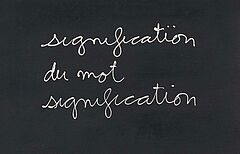 Bezeichnung: Signiert, datiert und englisch betitelt verso: Ben Vautier 1970, the meaning of the word meaning, Ben. Hier zudem ein handschriftlicher Ausstellungshinweis.