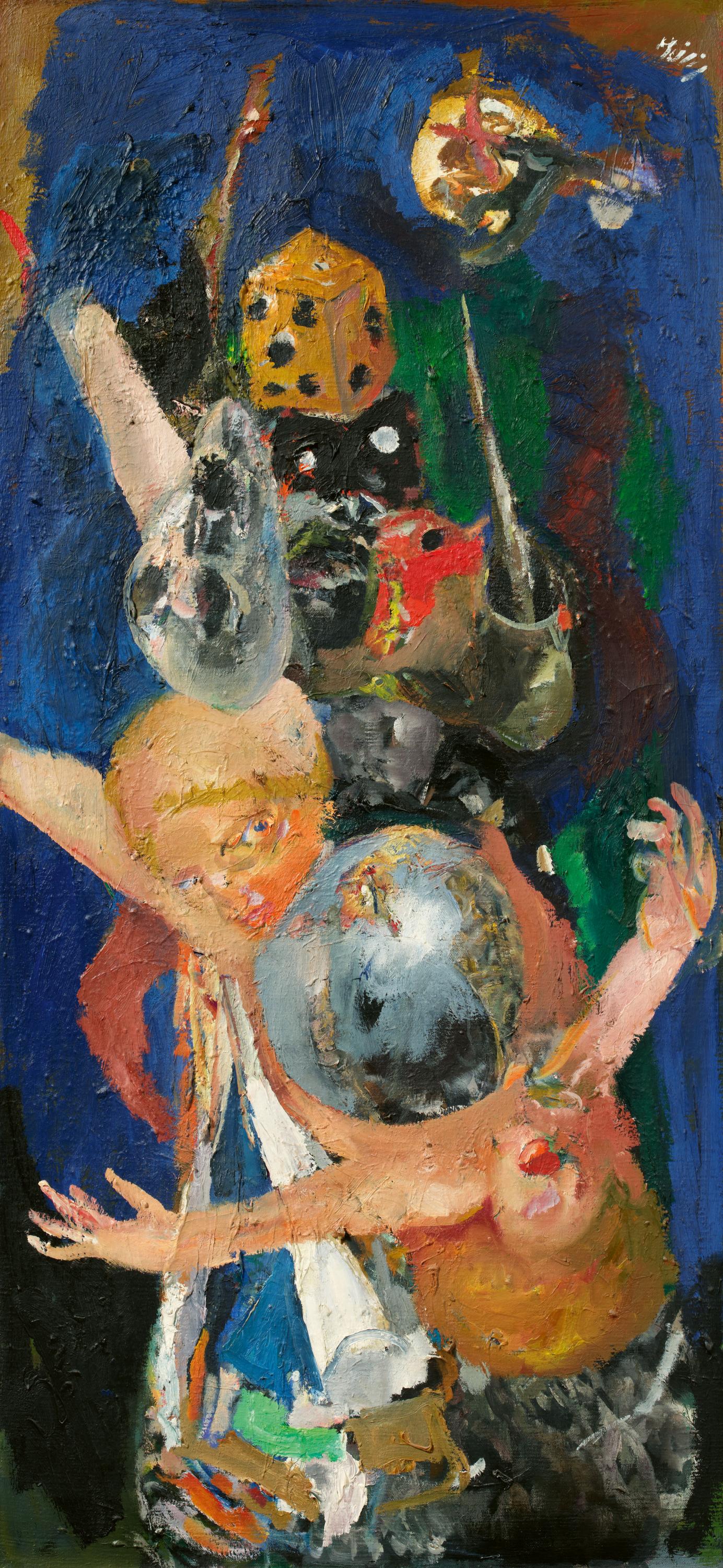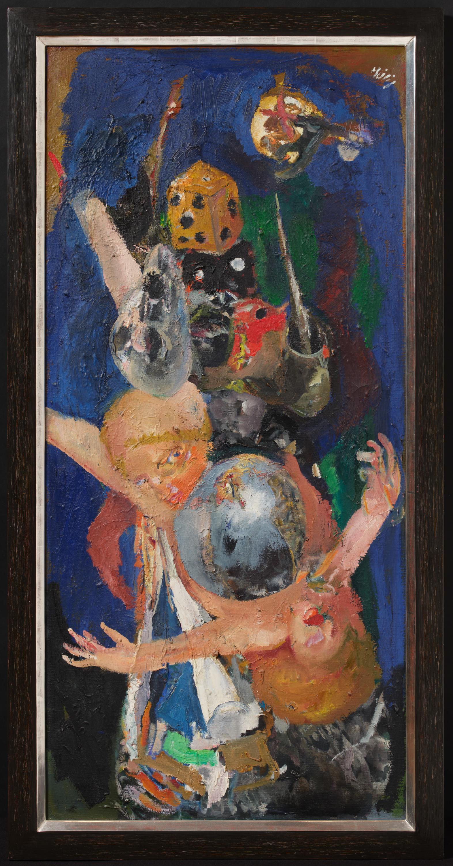 Bezeichnung: Signiert oben rechts: Heisig. Signiert, betitelt und datiert verso: Bernhard Heisig Würfelspiel 89. Hier zudem mehrere ausgestrichene Bezeichnungen.
