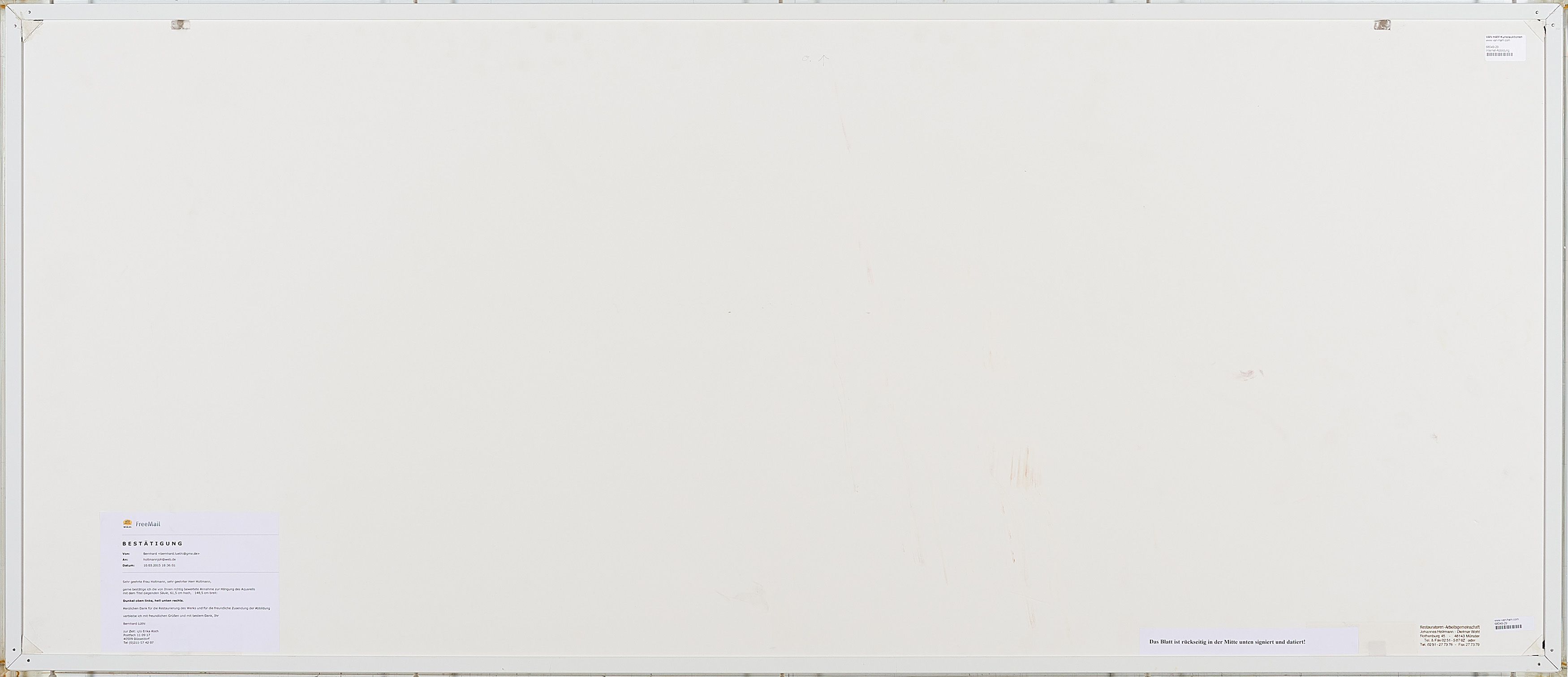 Verso auf Rahmenrückwand Schreiben (E-Mail) des Künstlers mit Angaben zur Hängung.