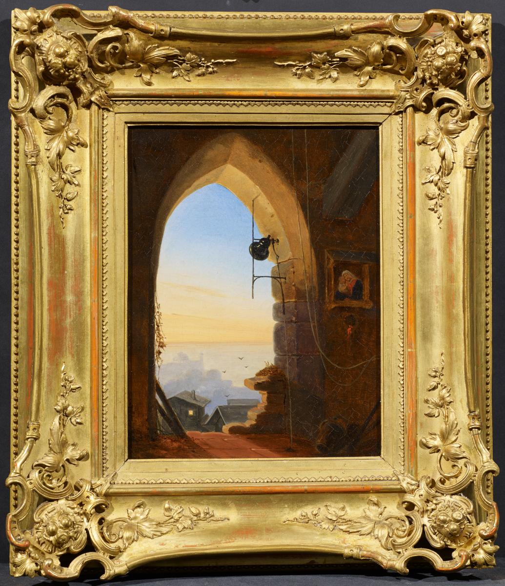 vgl.: Boetticher, Fridrich von: Malerwerke des Neunzehnten Jahrhunderts, Band II.,2, S. 799. Hier unter der Nr. 5 aufgeführtes Gemälde "Abendläuten", das erstmals 1845 auf der Münchener Kunstausstellung gezeigt wurde und von dem verschiedene Wiederholungen bekannt sind.