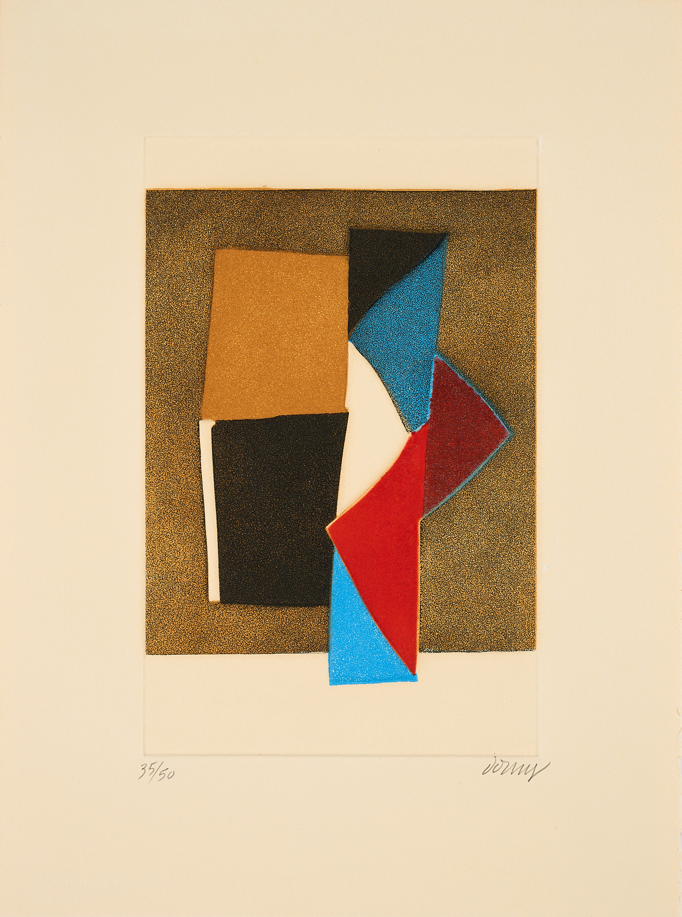 a) Ohne Titel. Farbradierung auf Velin. a) 25,5 x 16cm (38 x 28,5cm). Signiert und