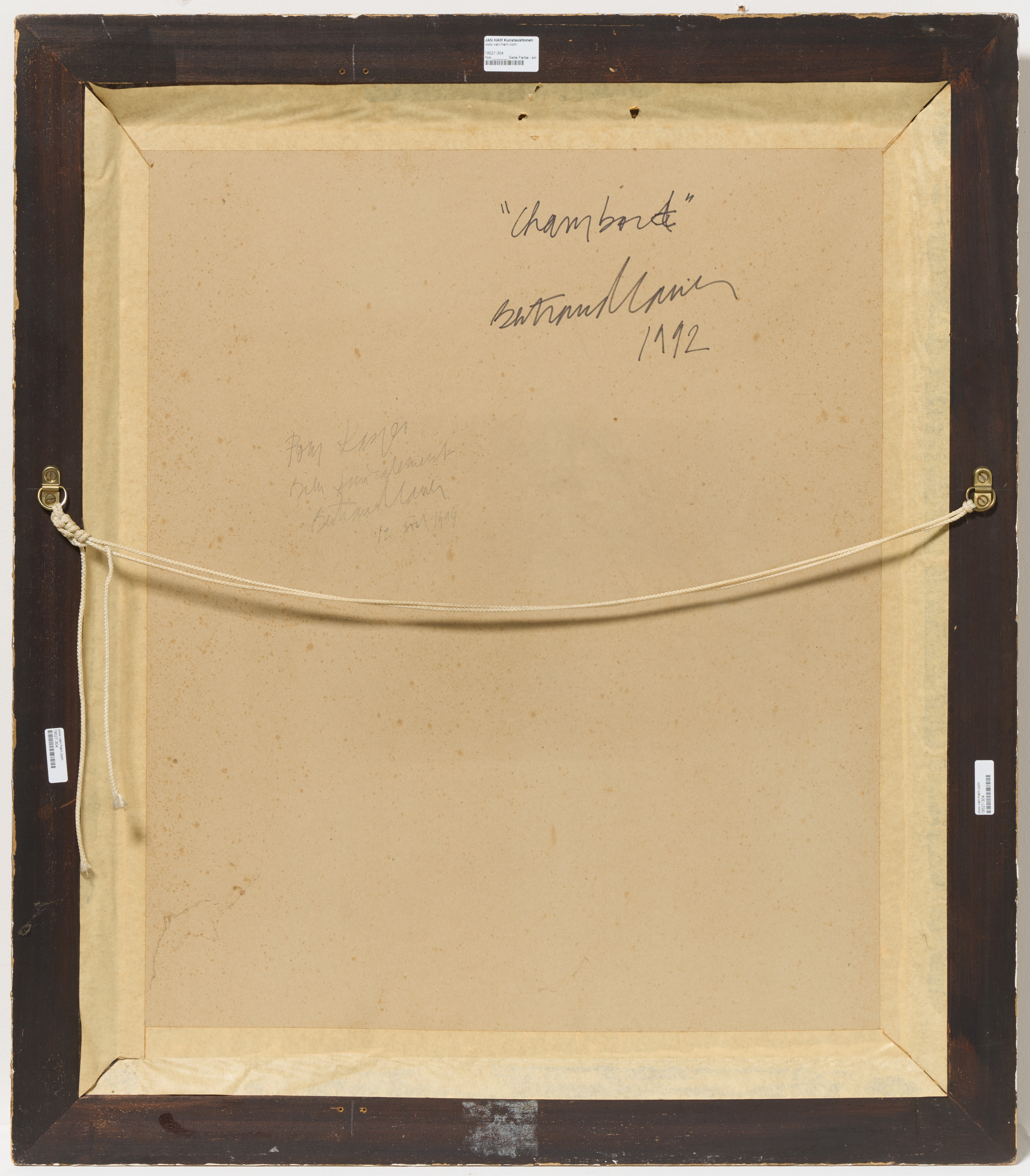 Bezeichnung: Betitelt, signiert und datiert verso oben mittig: "Chambord" Bertrandlavier 1992. Zudem an Kasper König gewidmet.