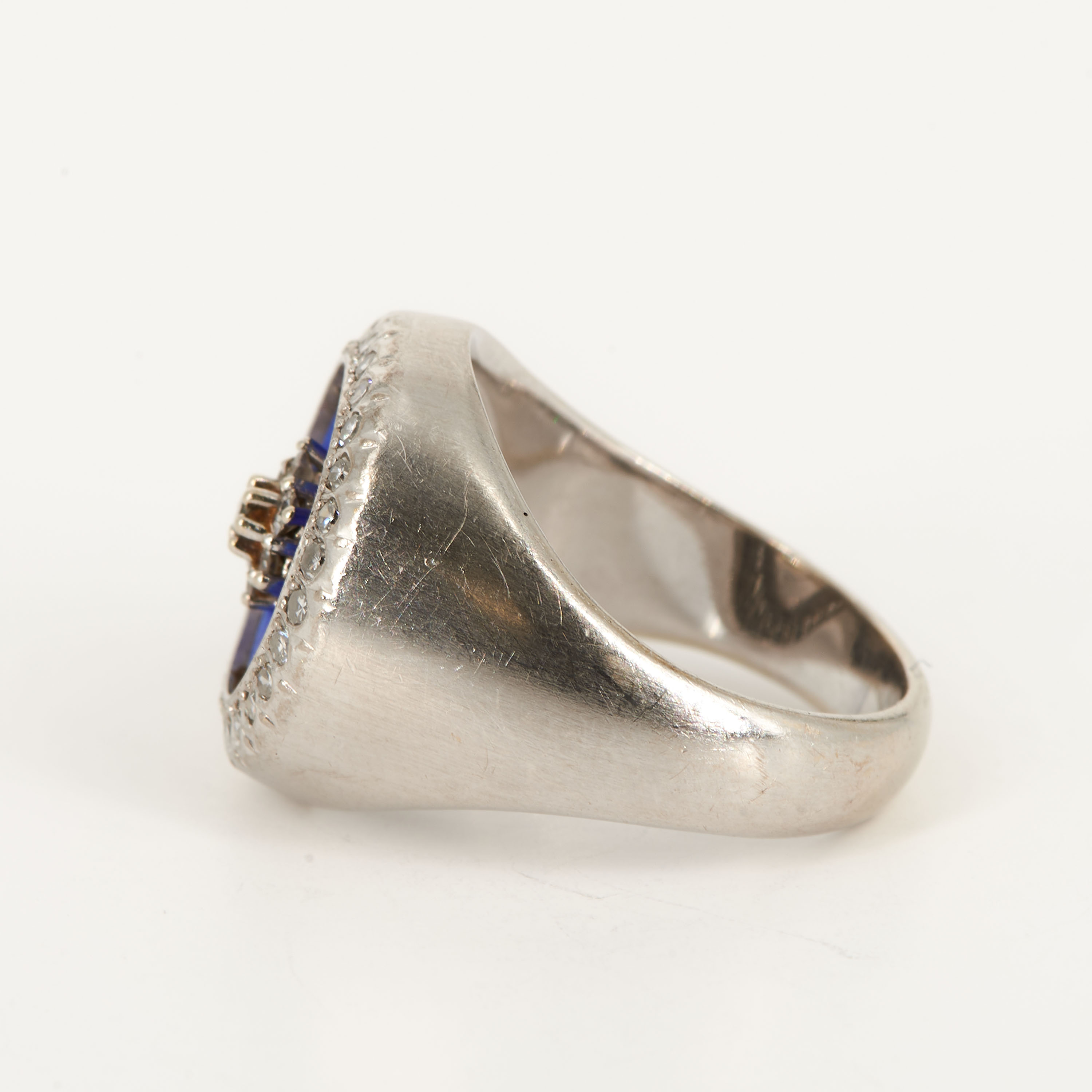 Material: 750/- Weißgold, Punze, dunkelblaues, transluzides Email.