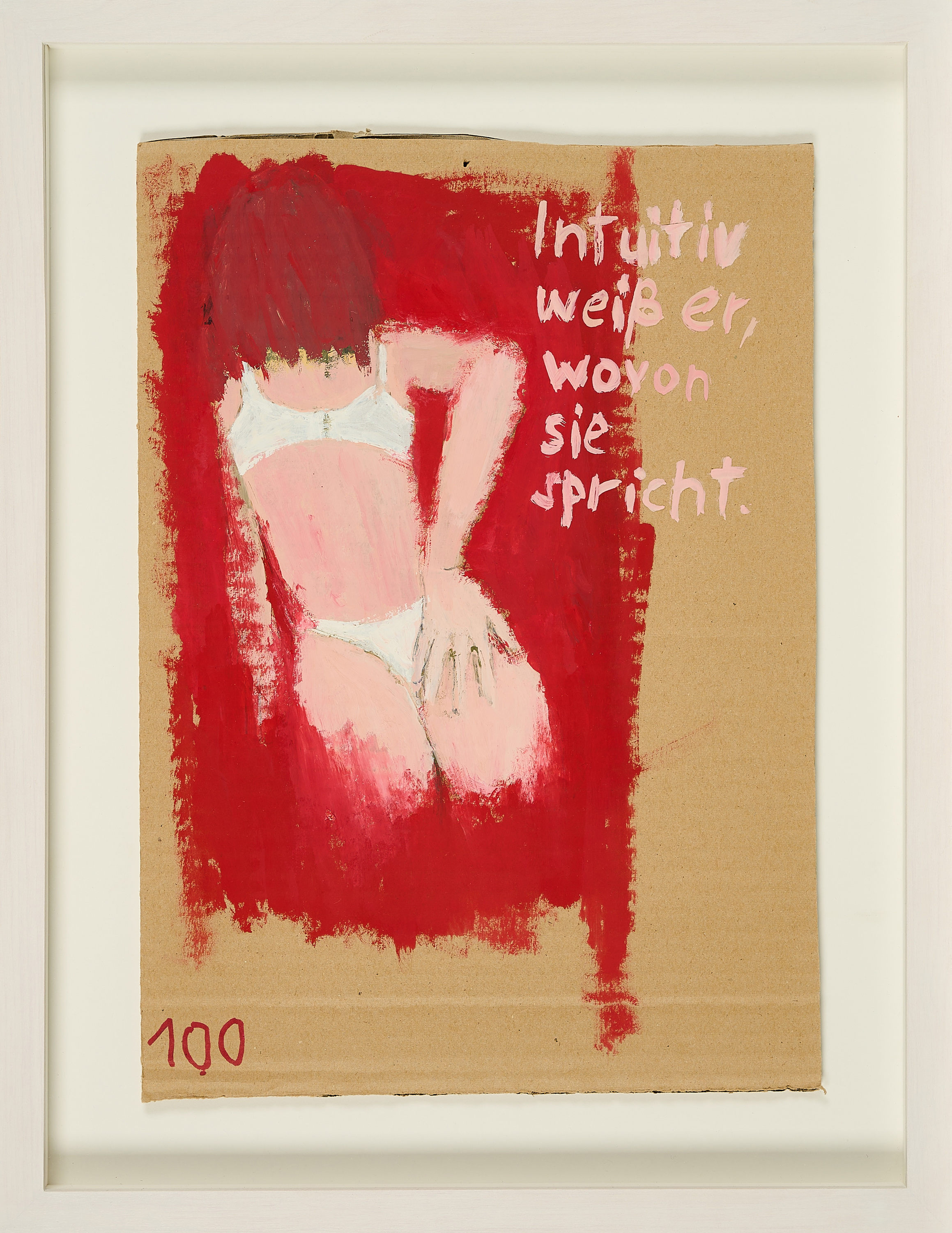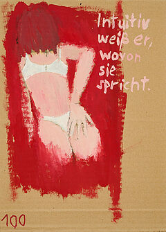 Bezeichnung: Betitelt oben rechts: Intuitiv weiß er, wovon sie spricht. Sowie signiert und datiert verso: Birgit Brenner 2009.