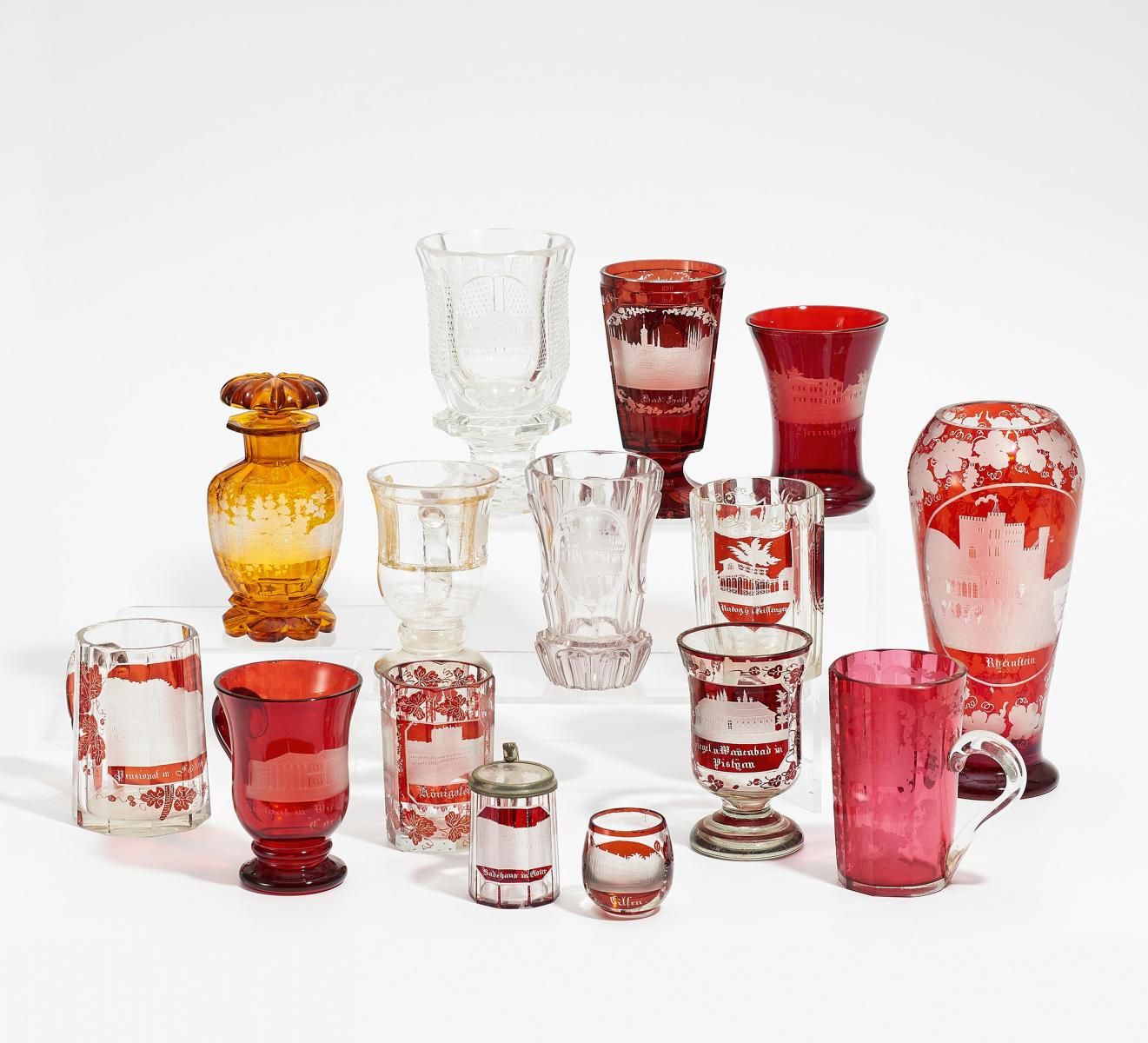 KONVOLUT VON 13 BADEGLÄSERN MIT VERSCHIEDENEN ANSICHTEN.