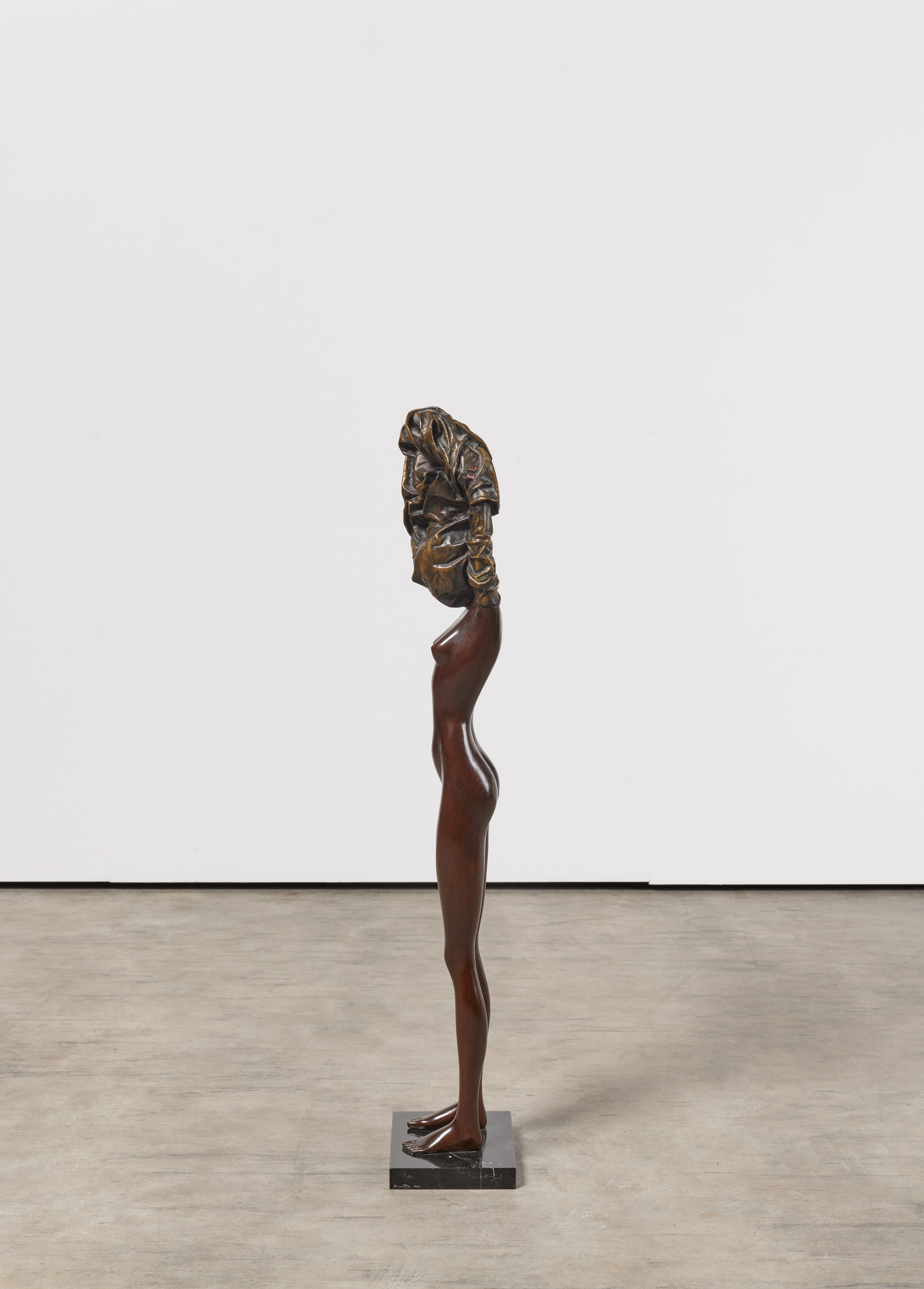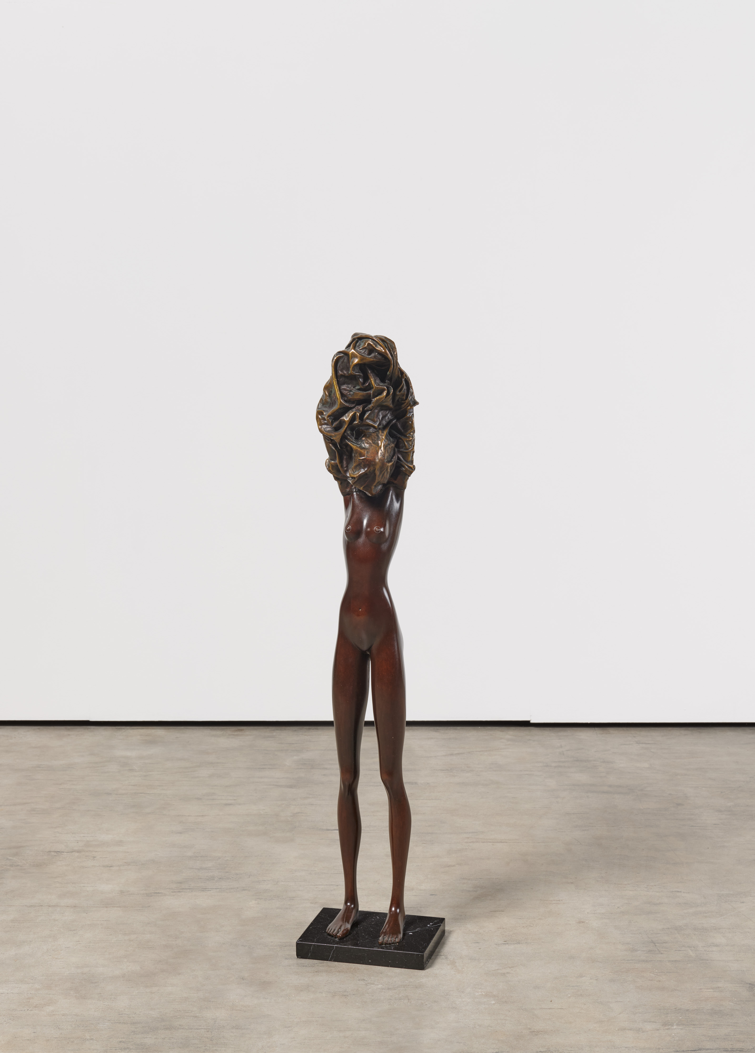 Technik: Bronze, braun patiniert und teilpoliert. Auf Marmorsockel.