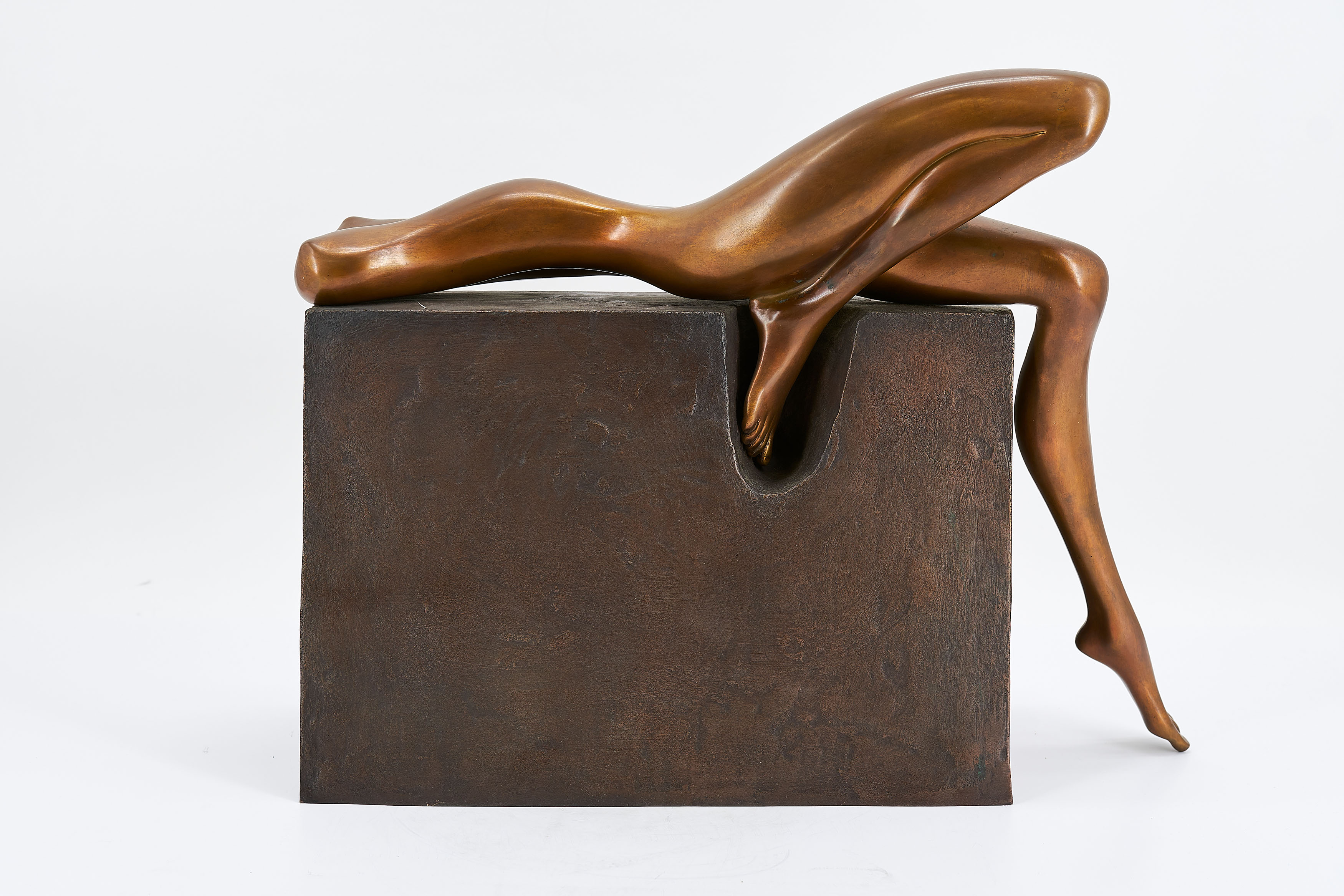 Technik: Bronze, braun patiniert und teilpoliert, mit Bronzesockel.