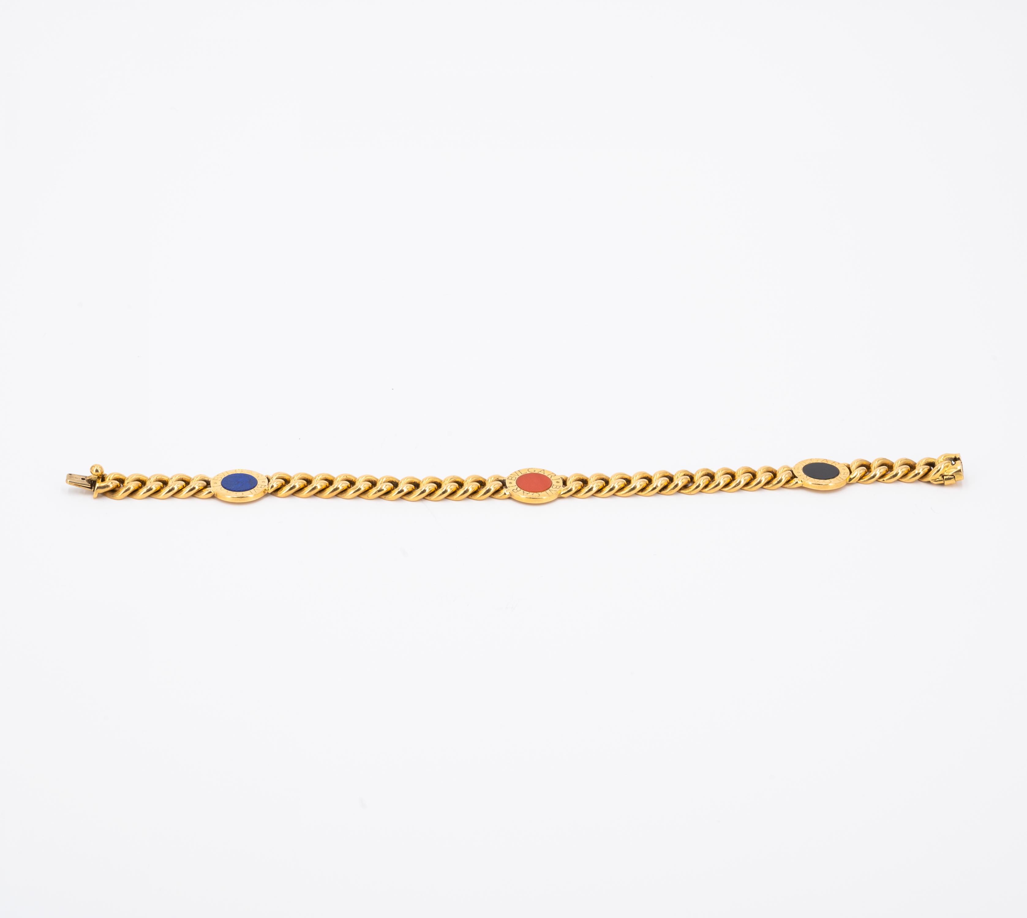 Edelsteine: 3 runde Farbstein-Platten Ø ca. 8,8 mm, Onyx, Koralle und Lapislazuli.